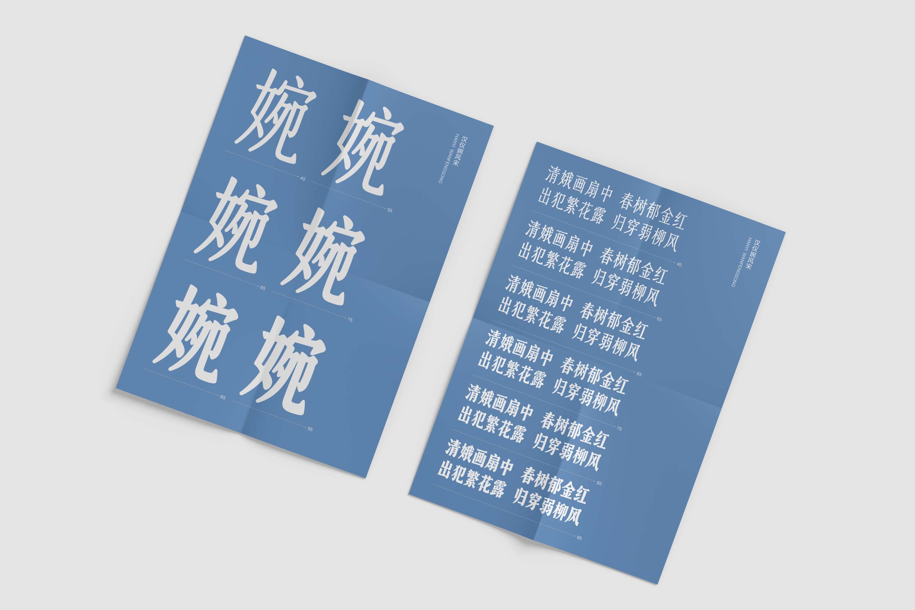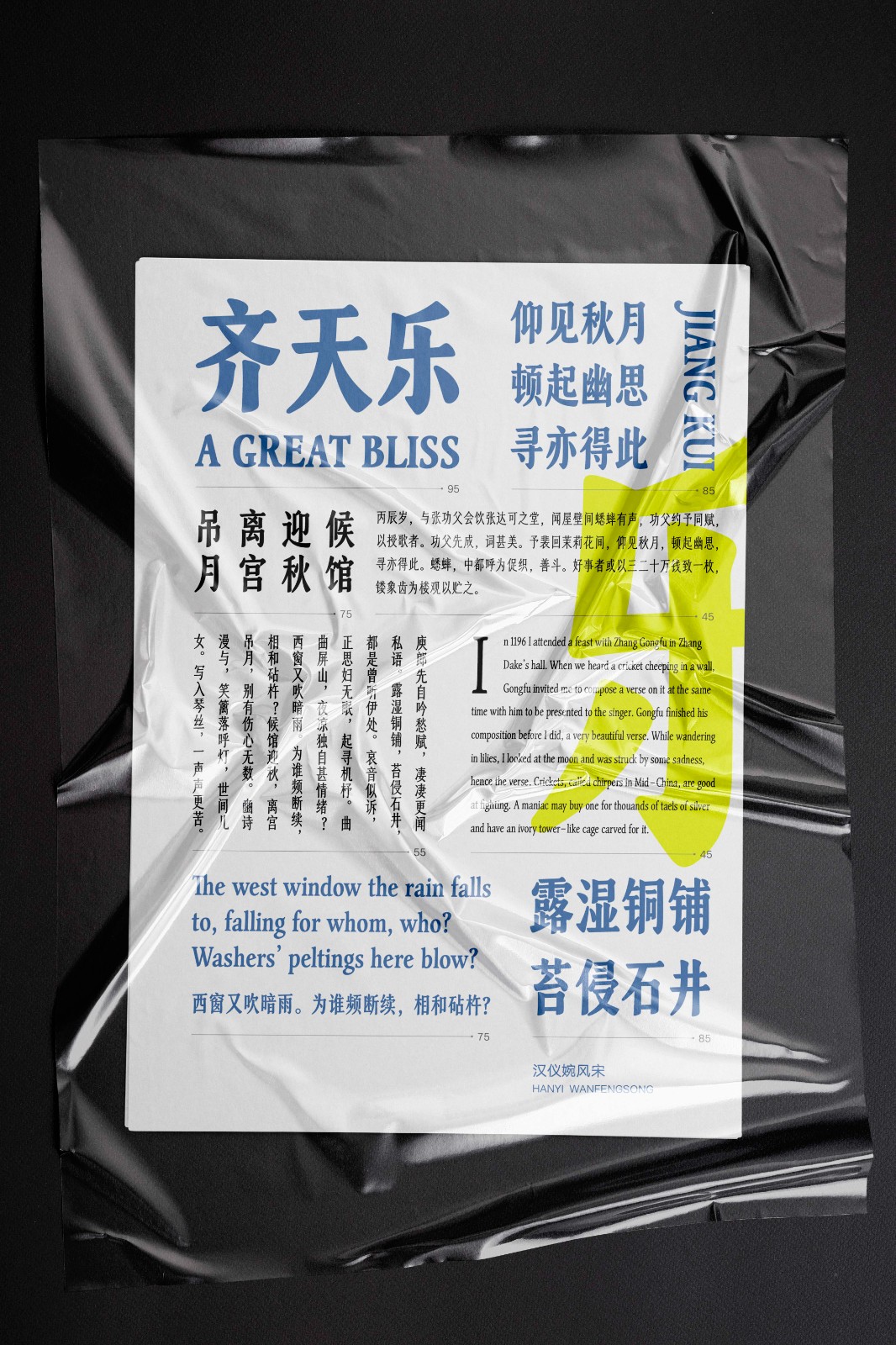 为了满足多种场合的排版需要,汉仪婉风宋家族被设计成由细到粗、从45到95共六款字重的家族化字体,实现字形气质从淡雅到浓郁的平滑过渡。可将字体应用在不同视觉层级的不同位置,以丰富版面效果。