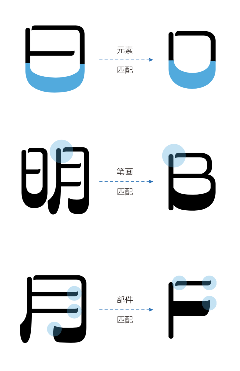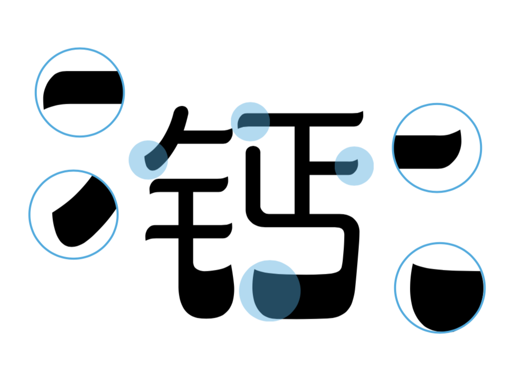 汉仪字研果冻体西文字母的设计灵感来源于对中文的充分解读,从中文笔画中提取了可借鉴的元素、笔画和部件。