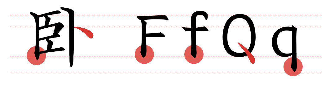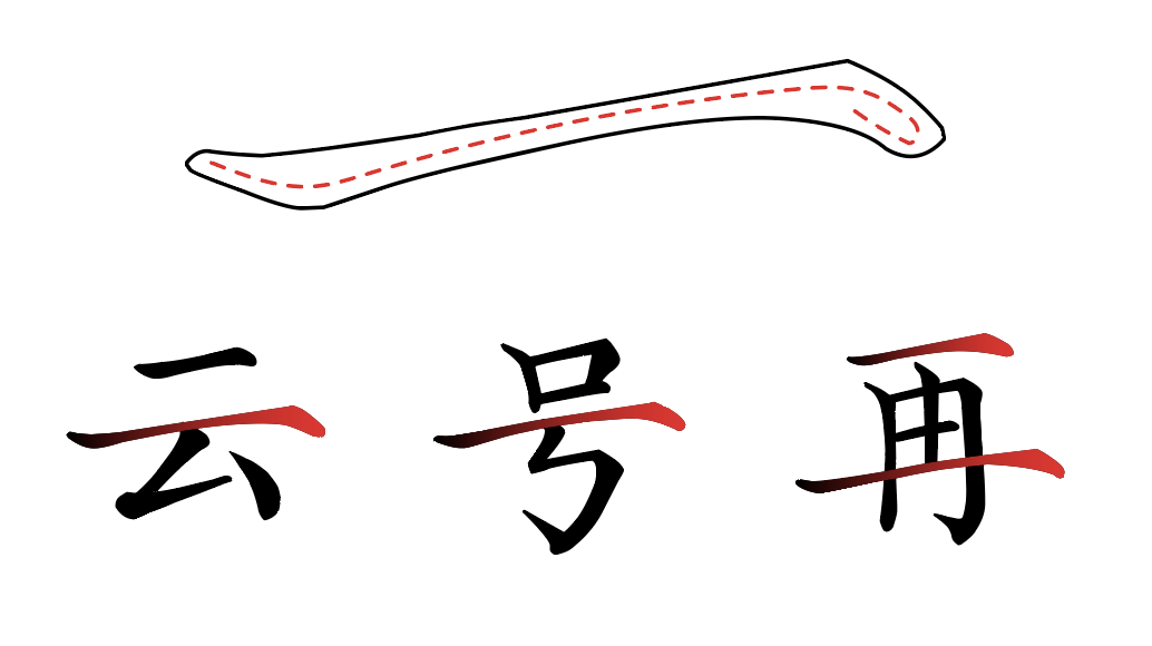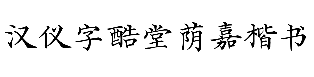 汉仪字酷堂荫嘉楷书的横画宽博,取左低右高之势,以稳定字体重心。横画起笔向右下45°重按,稍顿后向右行笔轻提,收笔时向右下顿,重按出一个骨头状,随后向左回锋提笔。此特点在横画是这个字的主笔或次主笔的情况下尤为明显。