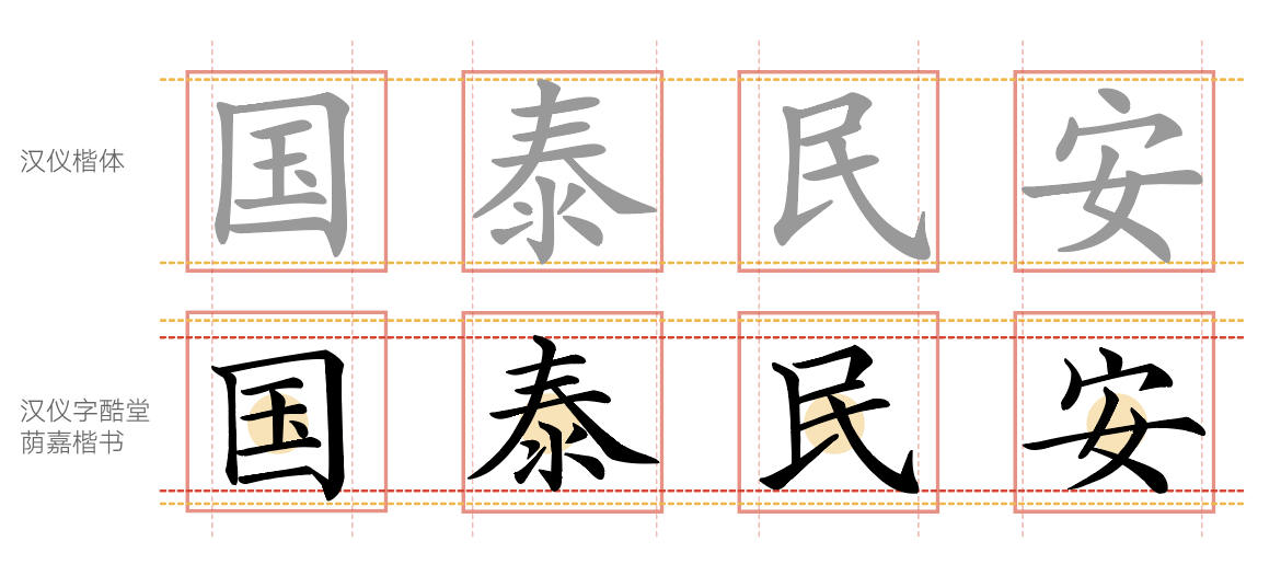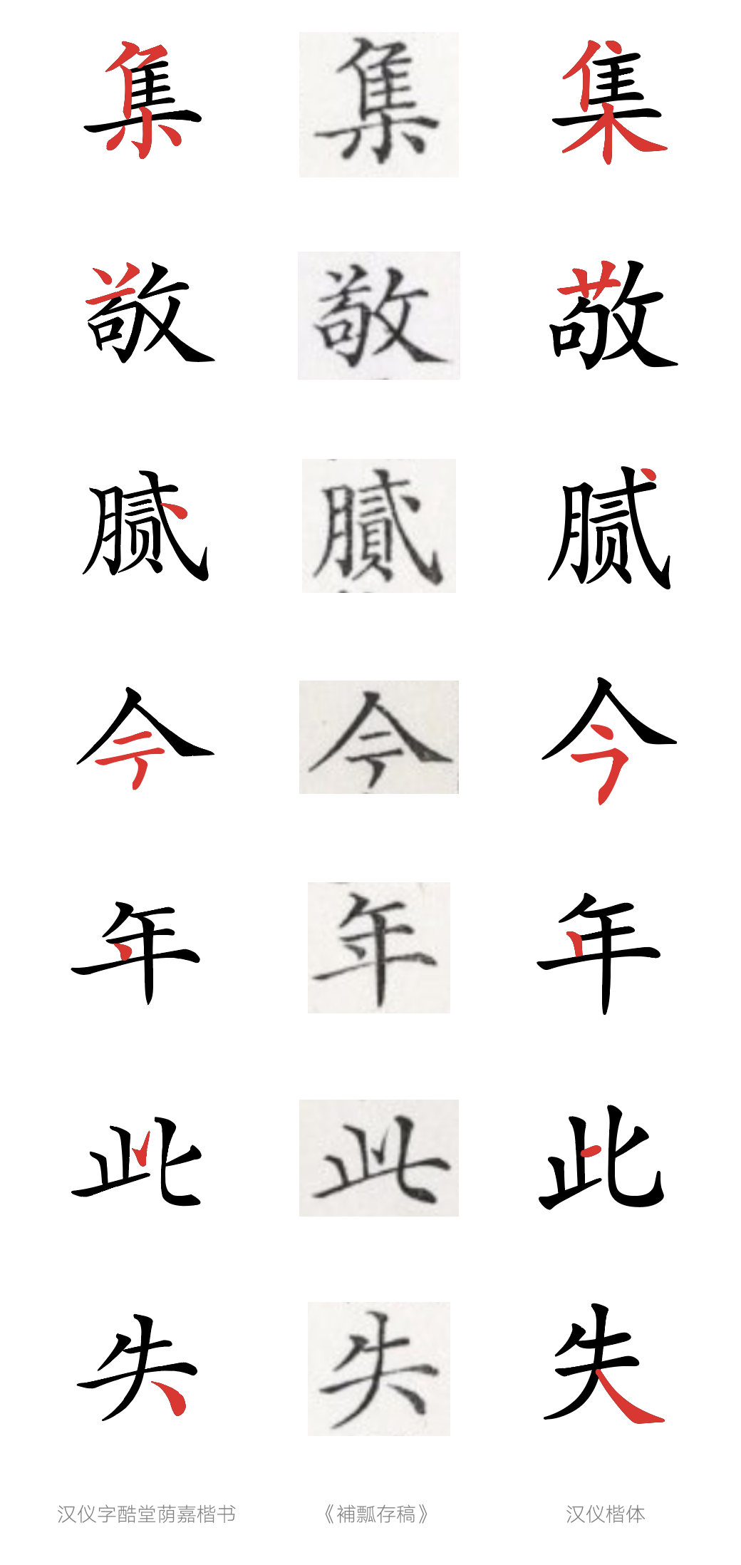 作为一款复刻字体,汉仪字酷堂荫嘉楷书的字形宽扁,重心偏下,中宫舒展。