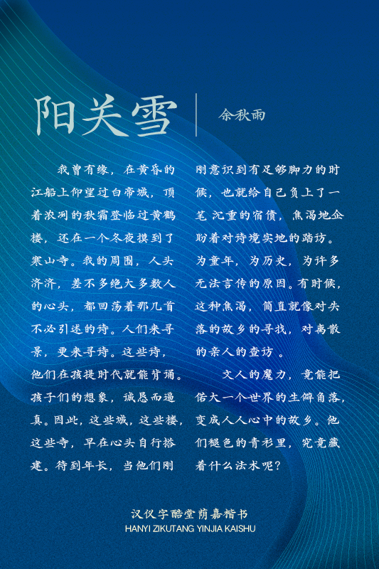 汉仪字酷堂荫嘉楷书作为一款复刻字体,保持了原刻本笔画纤丽,流动带行,点画华滋遒劲,结体宽绰秀美,横直相安、撇捺舒展、重心安稳的风格特点,在贴近书法原貌的同时,还十分注重字符的易读性、辨识性,异体字和古体字标准化。适用于古文、诗歌、短文的排版以及文化类的品牌设计。