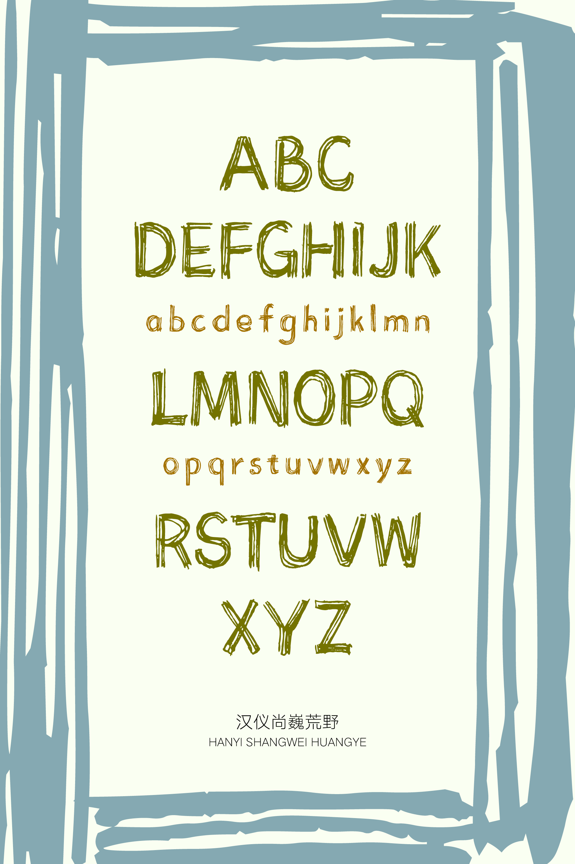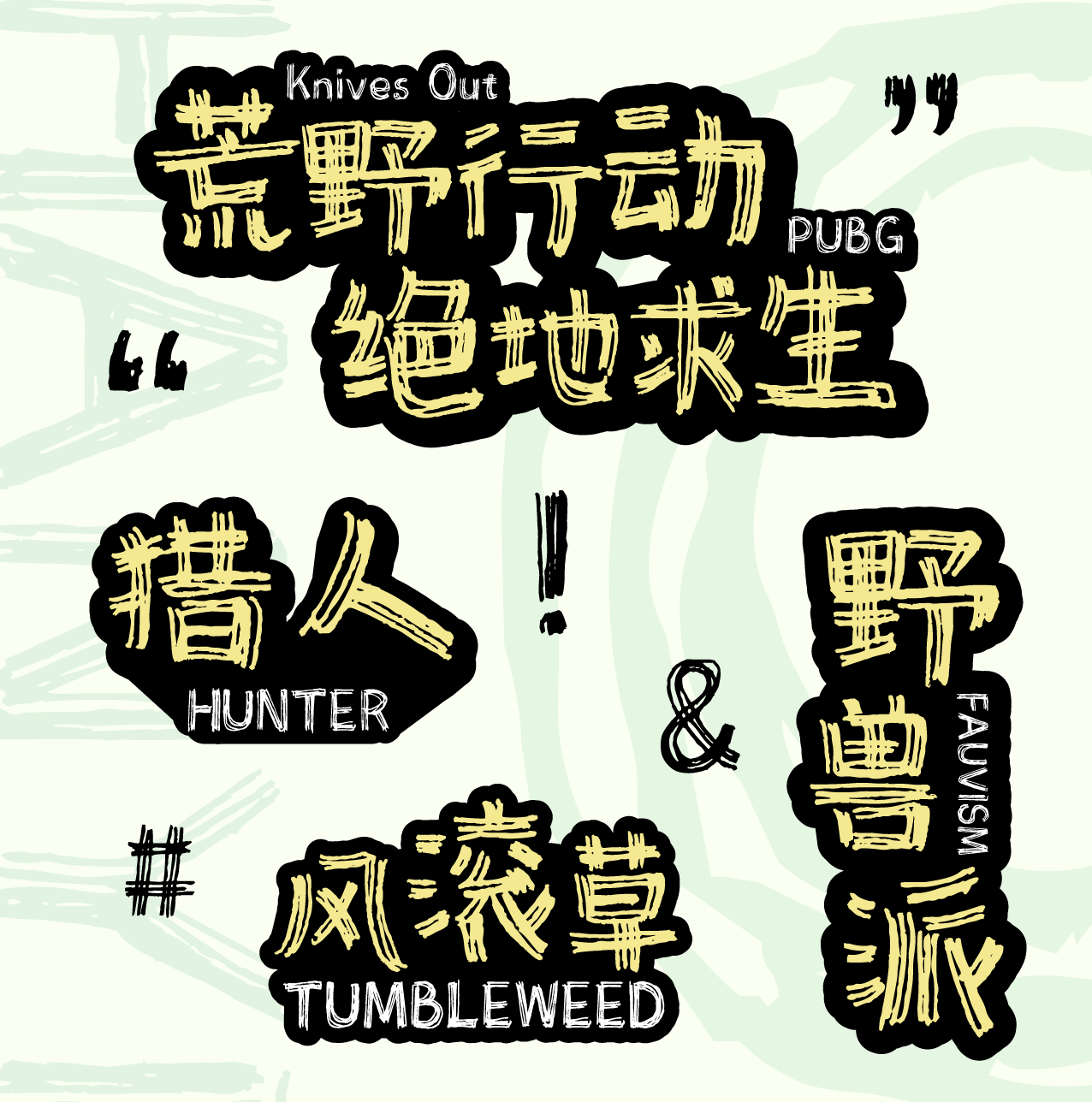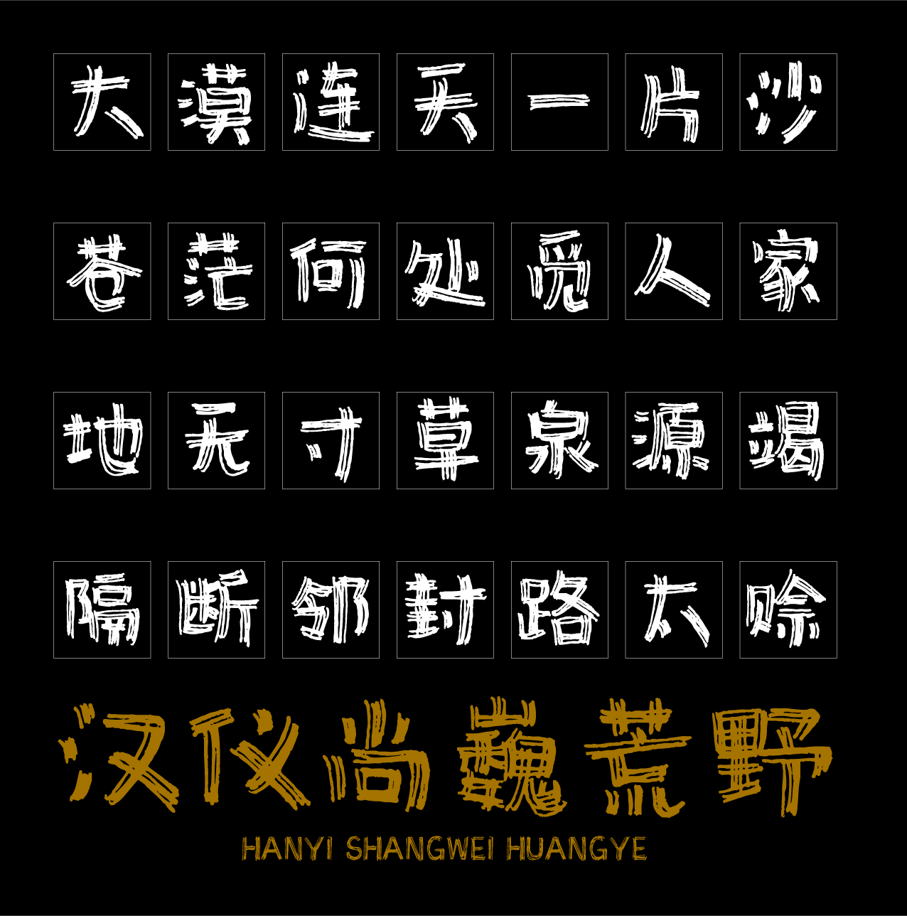 “汉仪尚巍荒野”运用排线的方式对字体本身进行重组,字与字之间的关系均衡舒适,诠释了一种新的手写体形式。