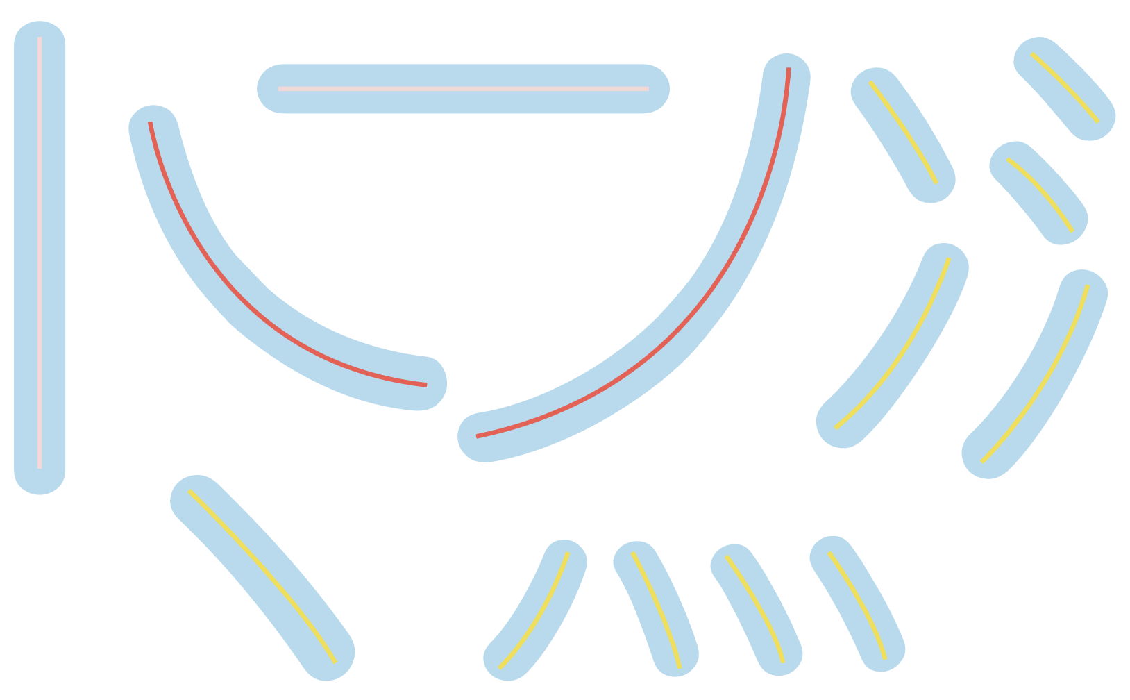 对称笔画的大小位置、粗细、弧度都一致。
