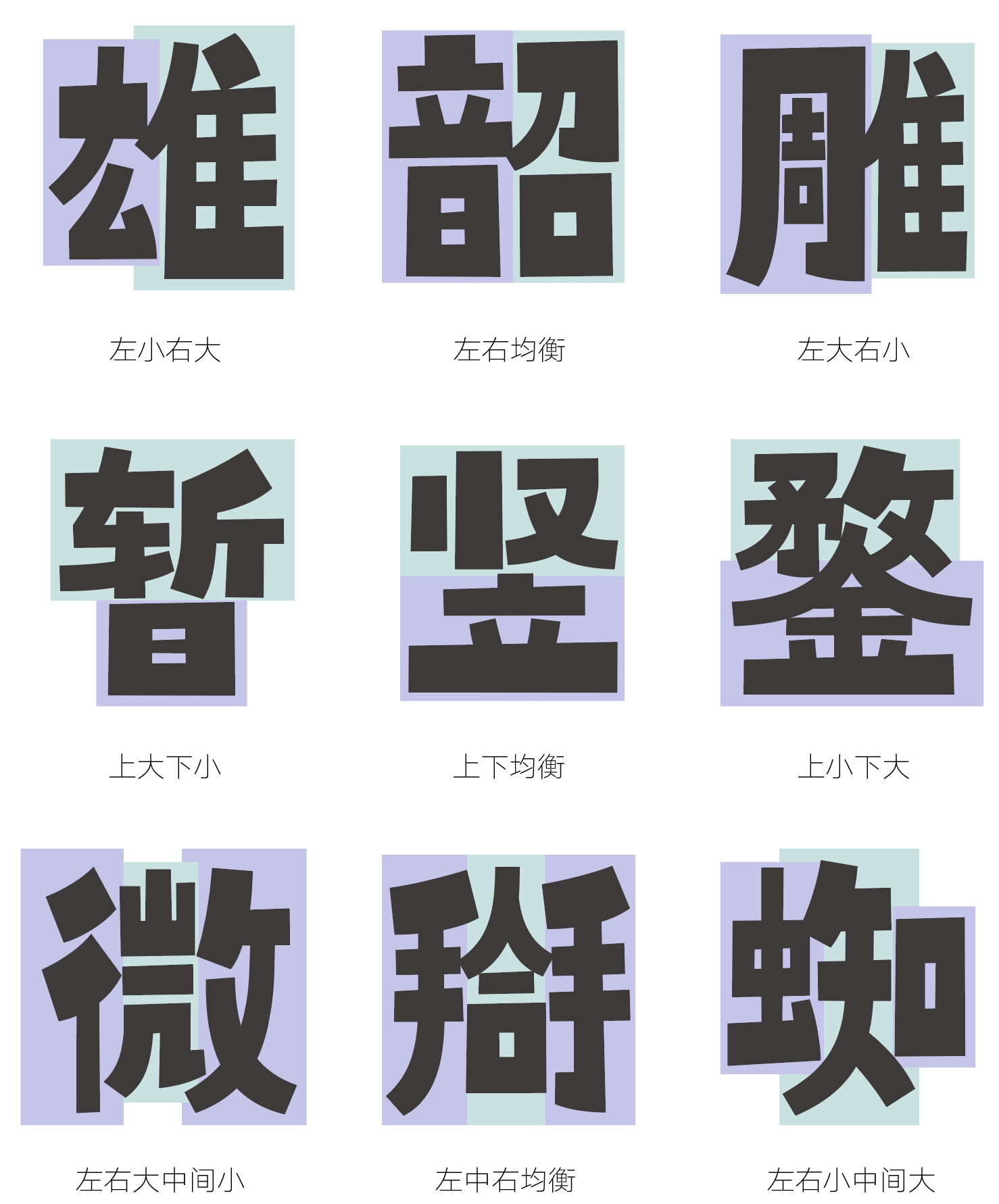 不同类别的字以适合的结构方式组合,避免所有字的结构过于平均呆板。