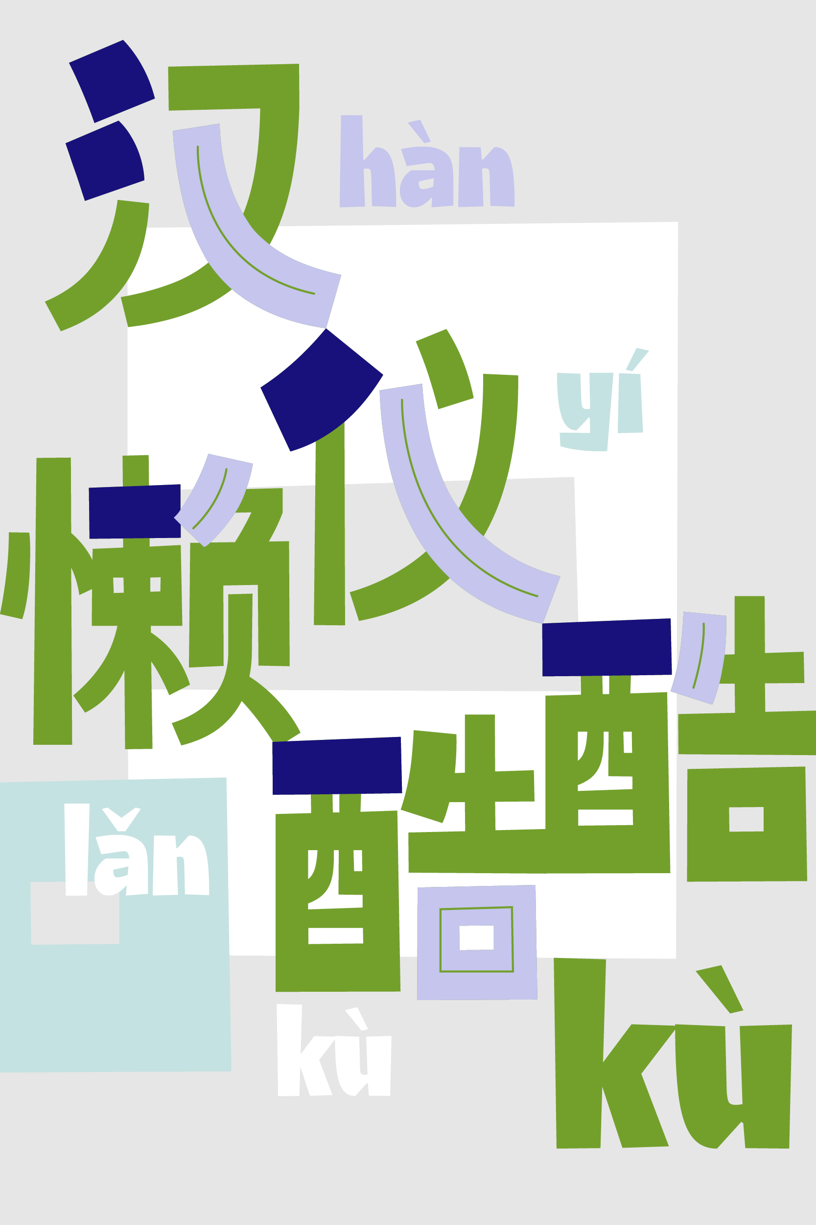 “汉仪懒酷酷”的粗重笔画多在外围,内部笔画细,粗细对比大,张弛有度,空白空间通透。凸显字体的俏皮有趣。