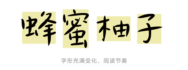 汉仪新蒂柚子体的字形充满变化,大小、高低、宽窄对比强烈,增强了阅读时的节奏感,也带来了手写的亲切感。