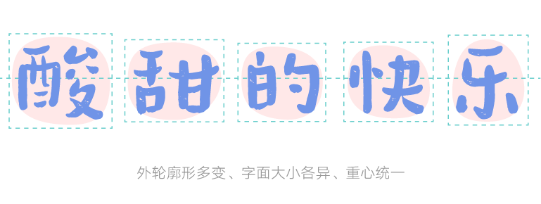 字体结构丰富,有着各式各样的大小对比关系,形成千姿成态的活跃感和节奏感,从而让整体更显得活泼、有趣,独具风格特色。