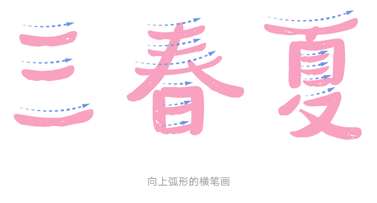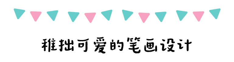 这款字的横笔画都是向上带有弧度,像嘴角微微上扬。每一个横笔画的弧度不同,灵活多样,避免过于均匀呆板,从整体上看,更显得活泼亲近。