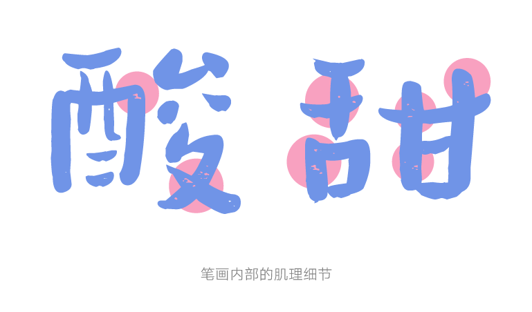 这款字的笔画内部保留了一些手写的肌理质感,有一种酸酸的糖果里带有糖霜的感觉,弥漫着酸酸甜甜的味道。