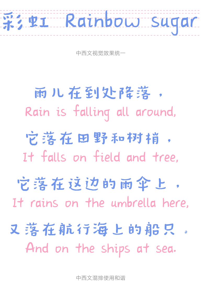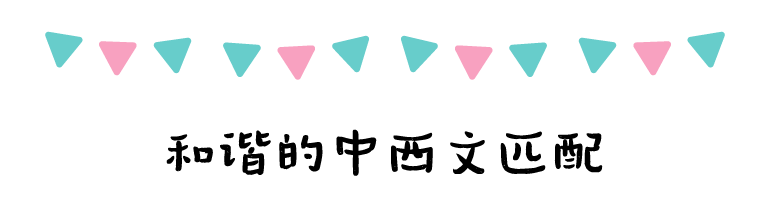 在西文部分,汉仪新蒂橡皮糖参照了中文的整体字形设计,保持圆润稚拙的风格,使得中西文混排使用十分和谐统一。