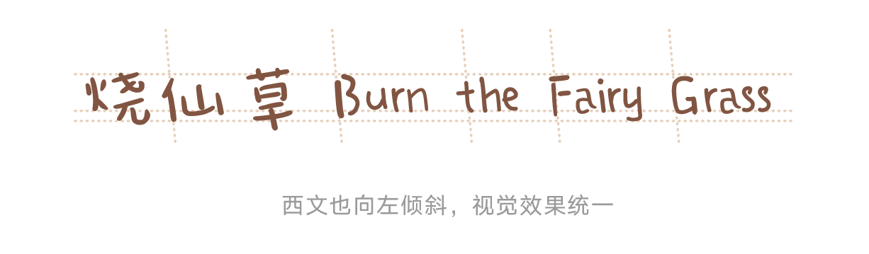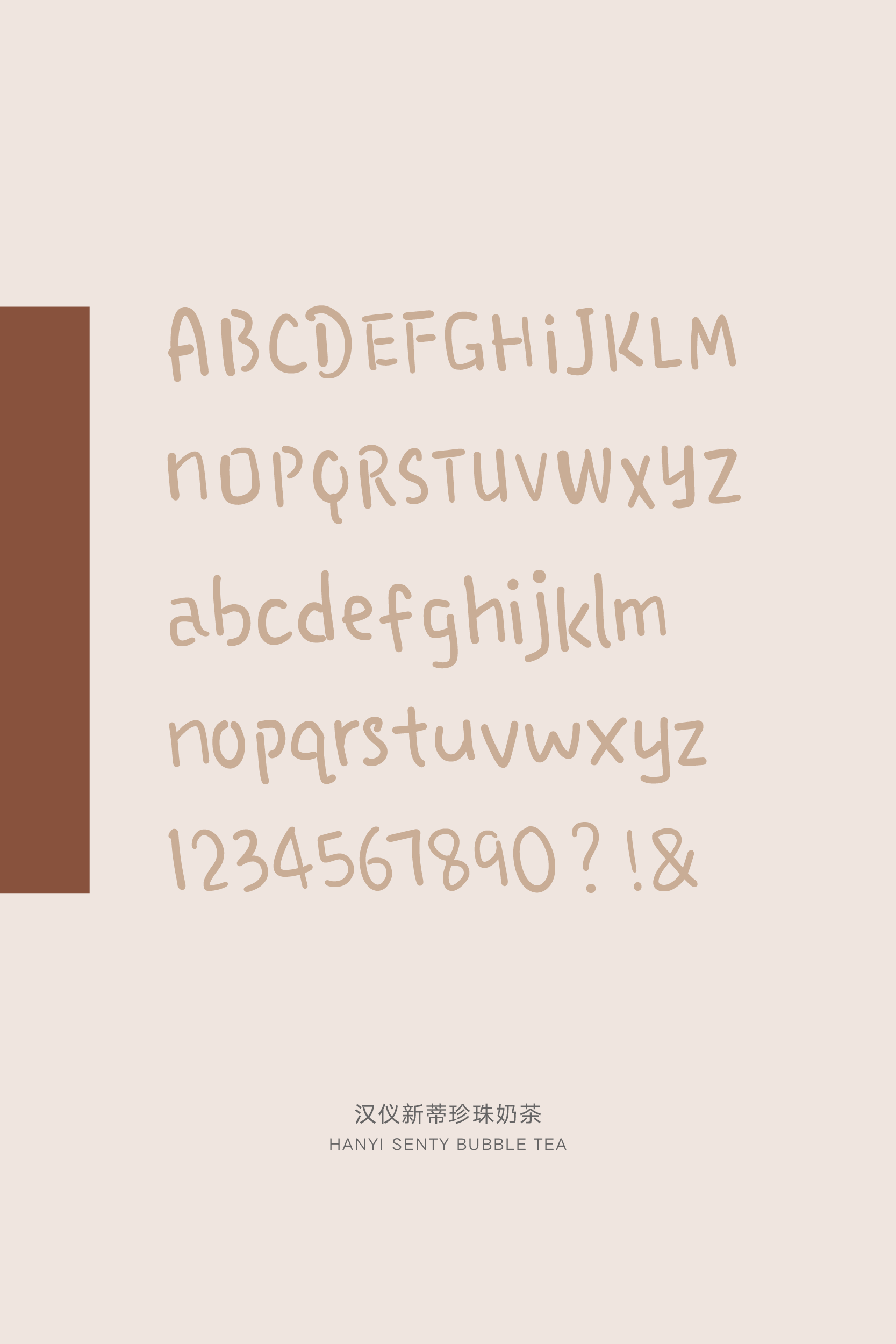 “汉仪新蒂珍珠奶茶”的西文,笔画手写感十足,字形同样设计成了向后倾斜的样式,使得中西文视觉效果统一。
