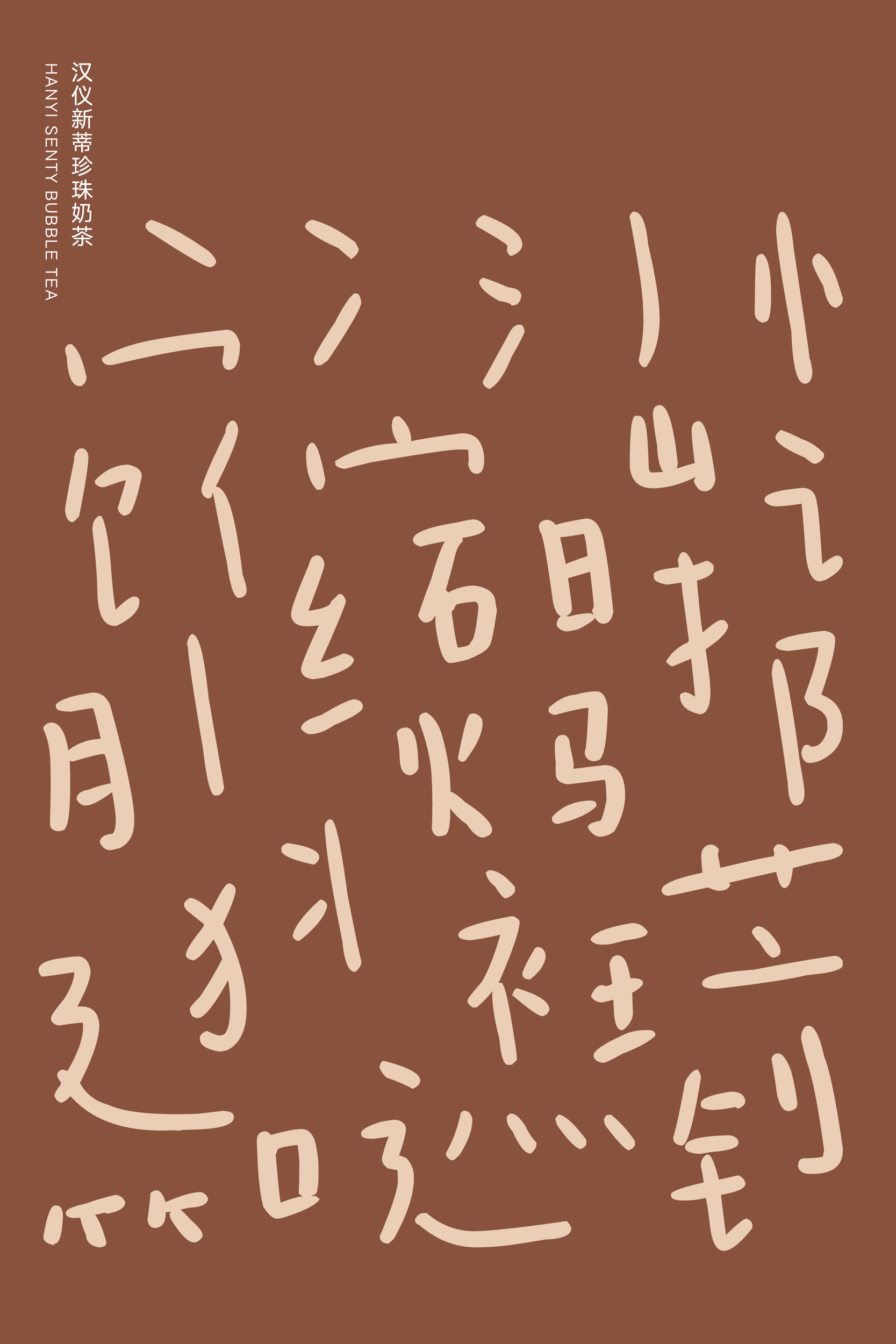“汉仪新蒂珍珠奶茶”字形整体向左倾斜,一反目前主流字体向右倾斜的特征,就像散落在奶茶里的珍珠一样,摇摇晃晃,向后滚动。