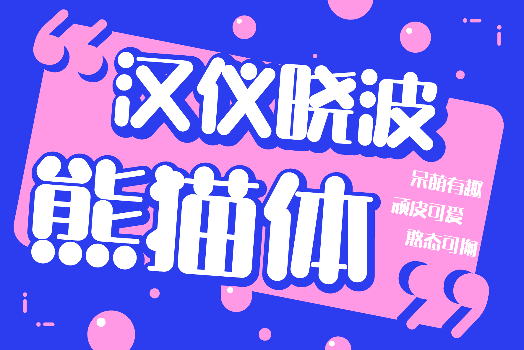 汉仪晓波熊猫体是一款像熊猫一样可爱友好的美术字。它的设计灵感来源于熊猫那种胖胖的感觉和可爱笨拙的形态,通过思考提取元素加以简化,最终形成了这款呆萌有趣的字体。