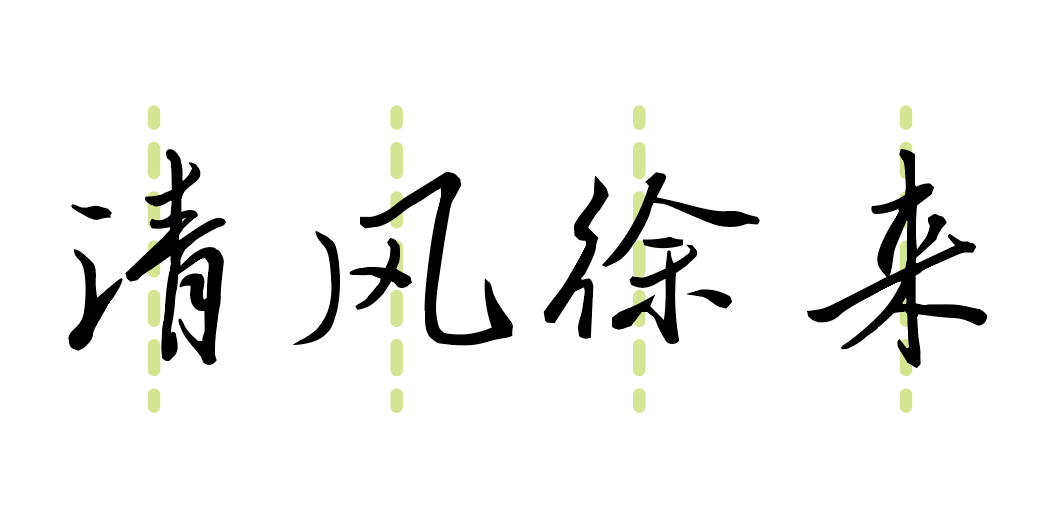 汉仪林锋体各种点画之间都存在彼此的联系、呼应,这种联系和呼应,既有它减少笔画以利加速书写的实际作用,又能加强行书的艺术渲染效果,显得笔势流动、通畅和谐、意态自然,给人一种生机勃勃的感觉。这种笔意萦带是行书中的重要笔法。
