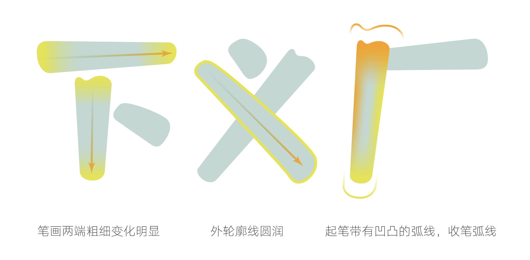 对很多竖直笔画进行了弧形处理,使整个字体更活泼,减少呆板感。