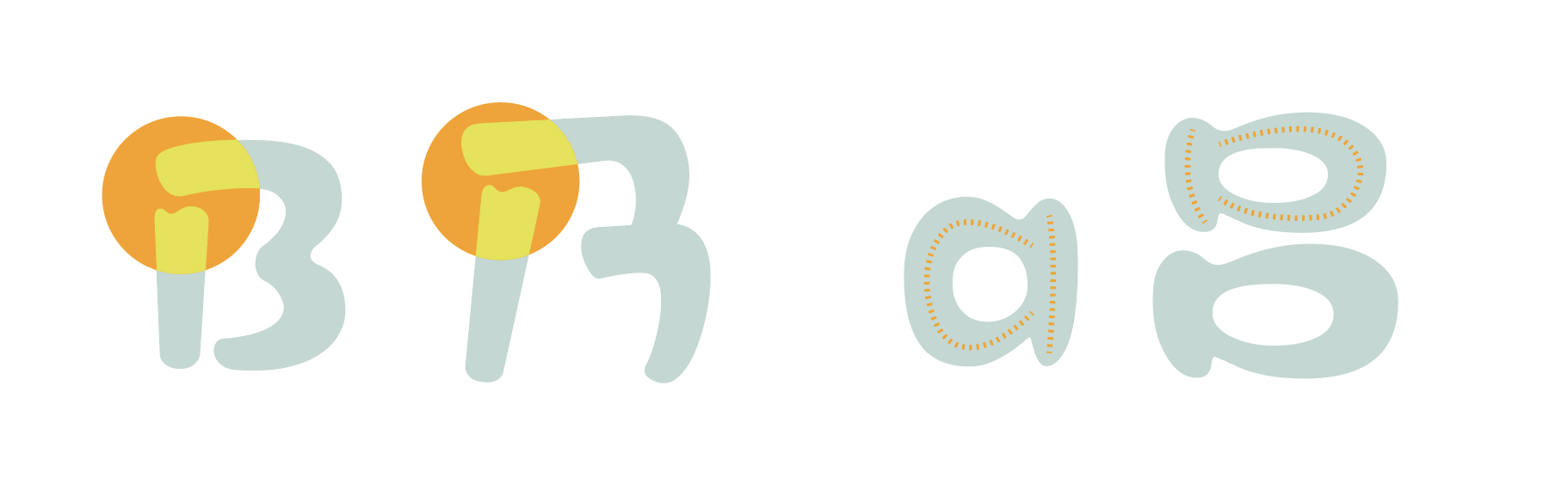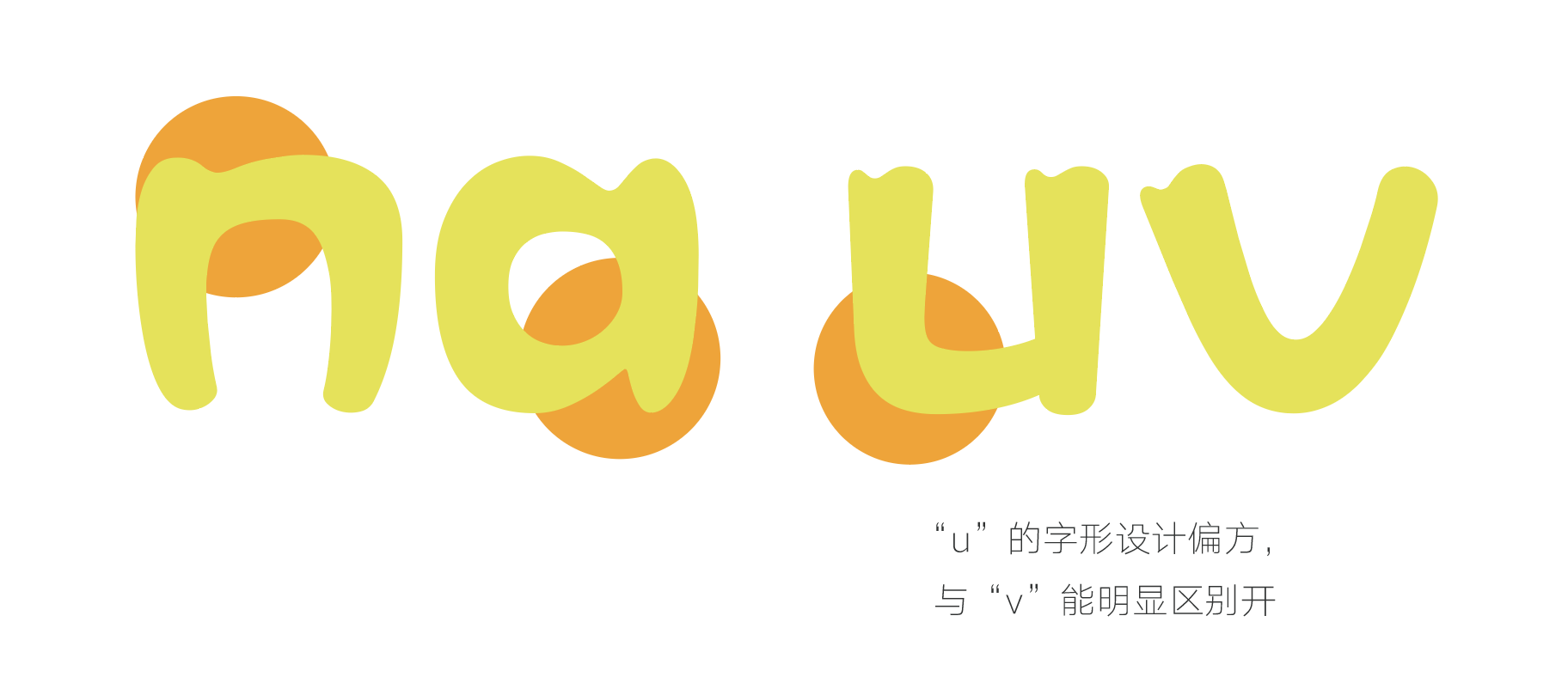 主笔与粗壮弧形笔画连接处迅速变细,既减轻了重量,又对字母有明显的界定。在保持可爱圆润的基础上,提升了易读性。