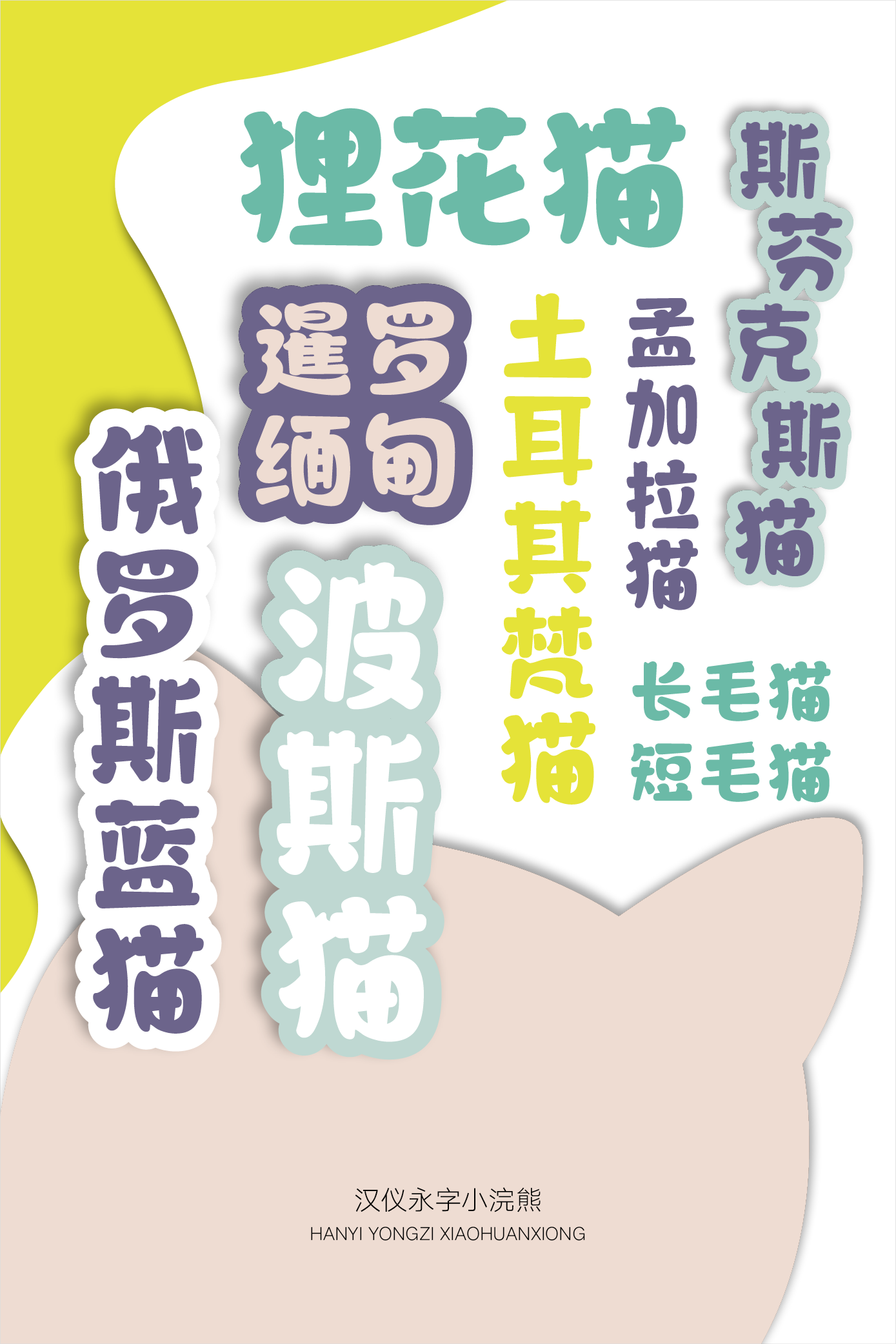 “汉仪永字小浣熊” 整体稳定统一,字形结构均衡、宽松疏朗给人休闲、放松的视觉感受。