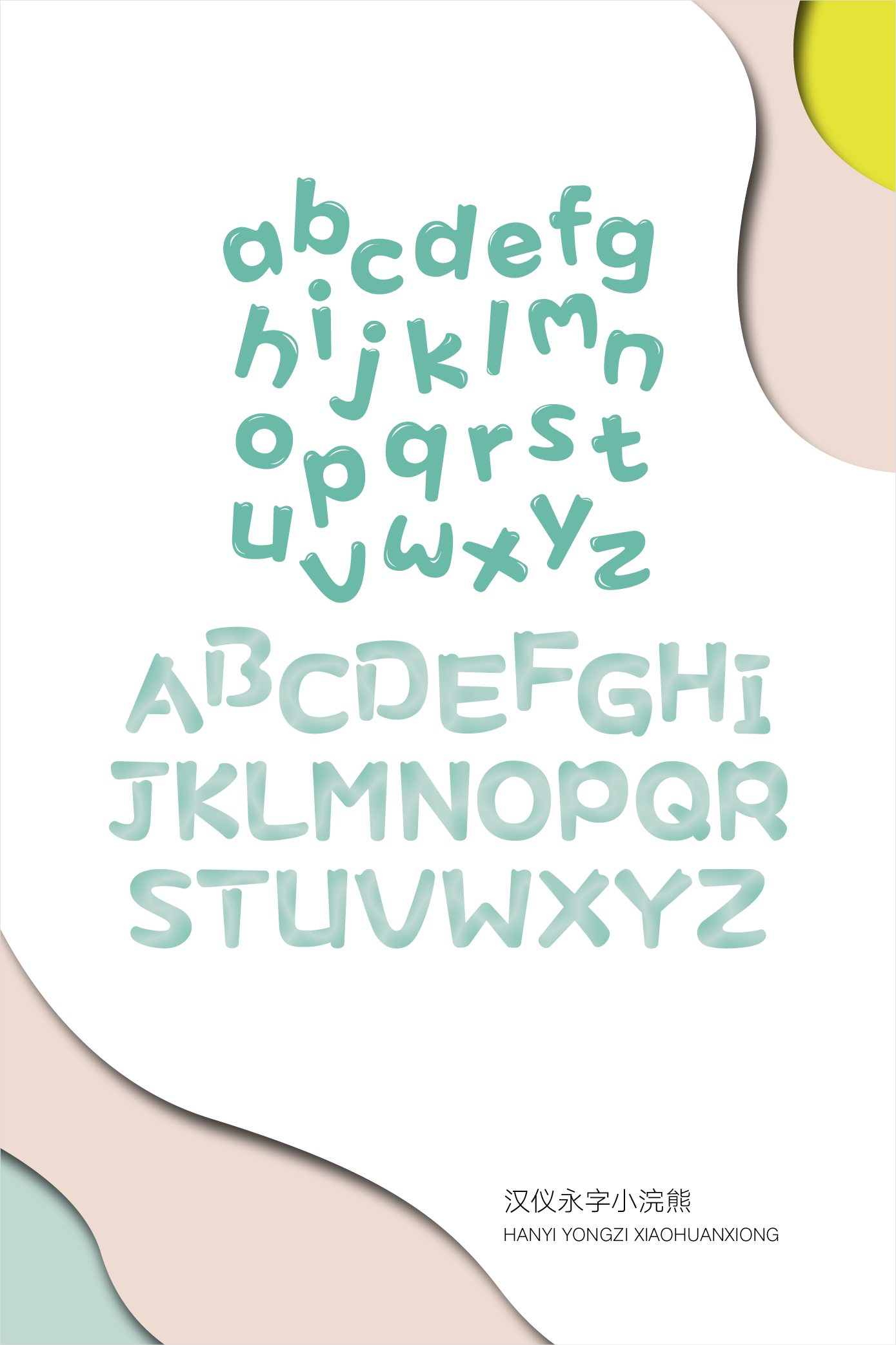 “汉仪永字小浣熊” 的西文字母有着和中文一样的笔画特点,中西文搭配使用十分和谐统一。