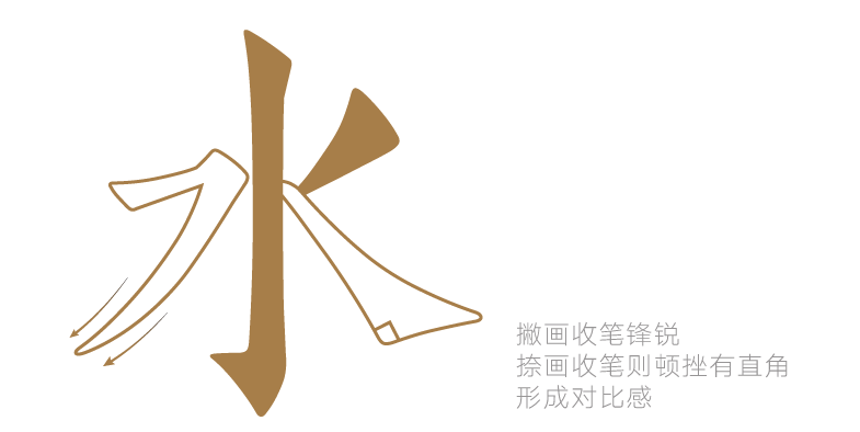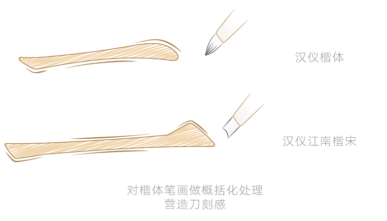 在刚劲方面,这款字体点画较为方硬,撇捺笔画尽可能降低曲线弧度,捺画顿笔处则以90度角呈现,展现出笔画的刚劲感。撇、捺、点等斜向笔画,一笔之内粗细变化明显,对比度高,笔锋尖锐,以体现出刀刻的锐利、硬朗的视觉感受。