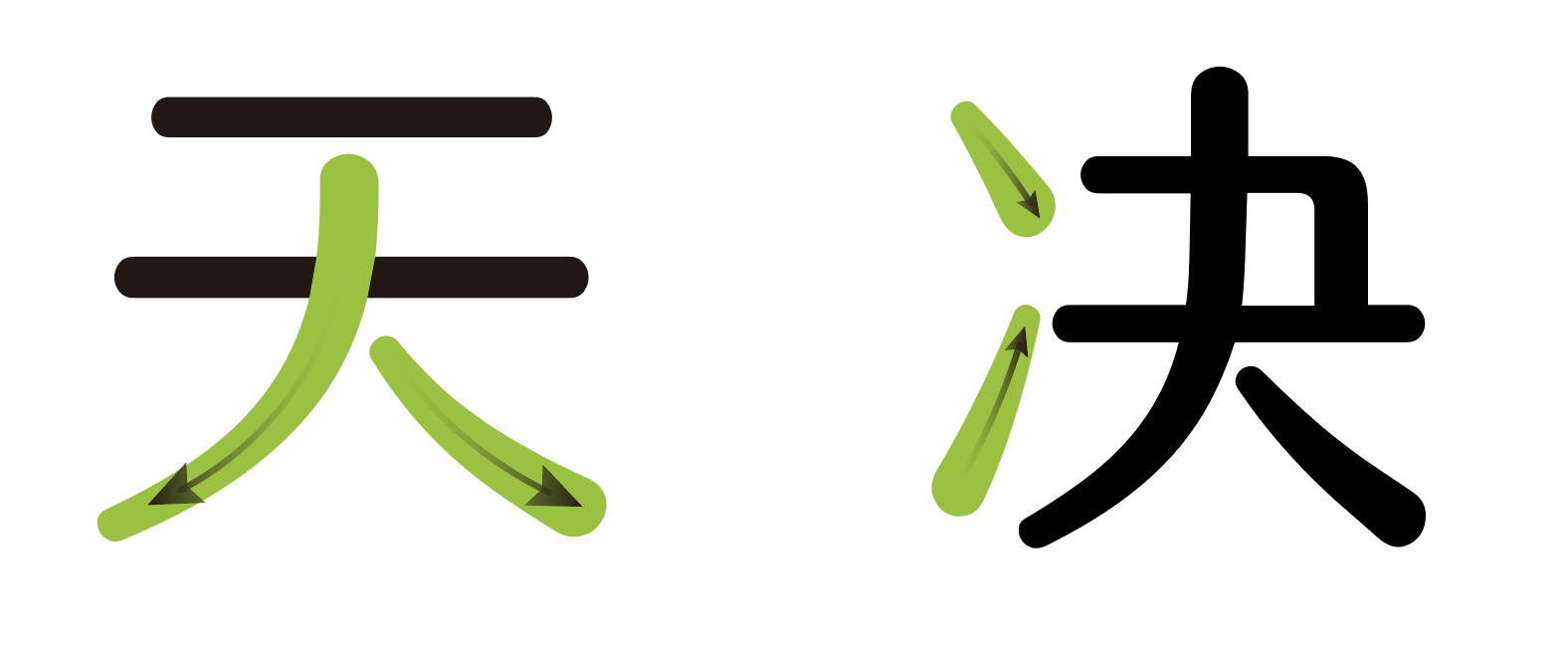 汉仪清芬体的笔画将宋体的形态和圆体的收尾融合在一起,呈现出多样性。如“天”字,撇从粗到细,捺从细到粗;如“决”字,点从细到粗,提从粗到细,这与宋体字的笔画走势相同,但所有笔画均以圆角起笔和收笔。这样具有创新性的设计方式使字体达到了一种圆润、流畅、舒适的视觉效果。