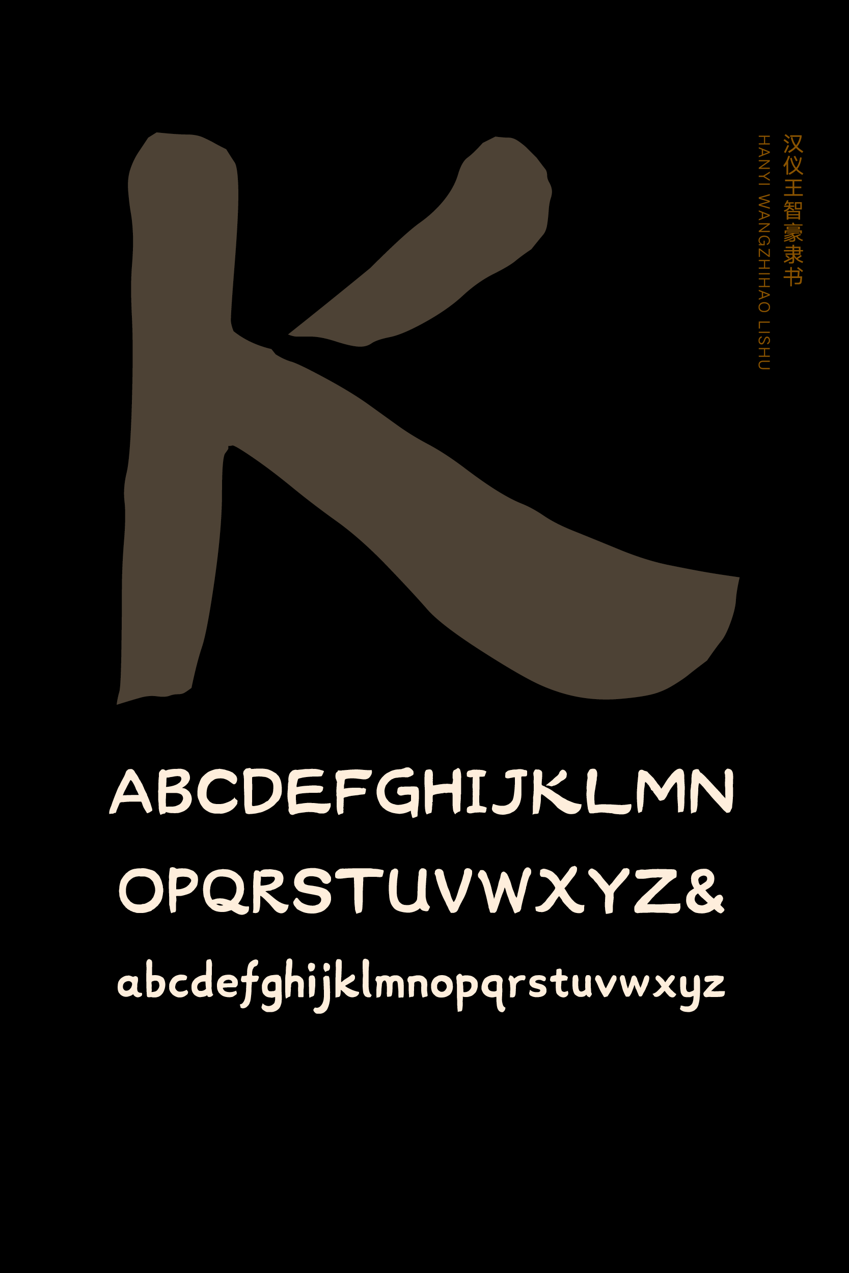 汉仪王智豪隶书的西文也是由作者创作的,作者将隶书蚕头燕尾的特征融入到字体中。字形整体温润可爱,中西文搭配在一起统一和谐。