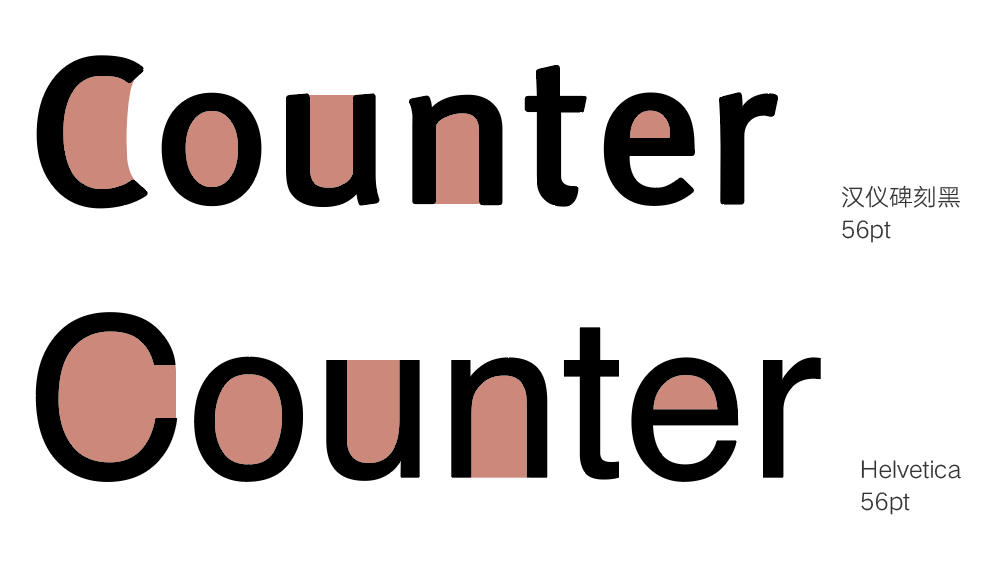 汉仪碑刻黑的西文字母参考了无衬线字体的骨骼特征,并在此基础上融合了碑刻黑中文笔画的特征。