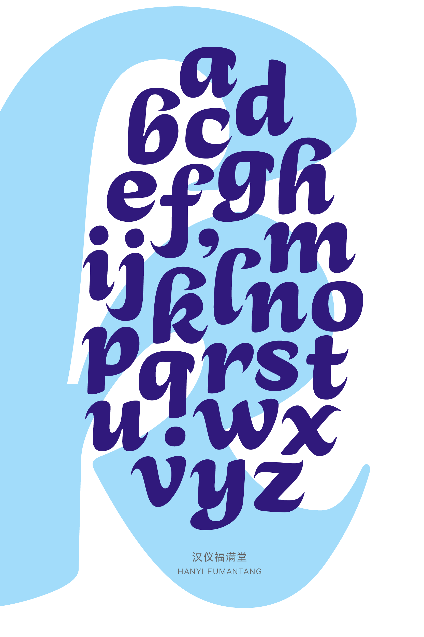 “汉仪福满堂”的西文部分被设计成一种怀旧、复古的广告字体的造型。西文字母造型充满了手写感,还原了汉字起笔收笔的“笔锋”,与中文混排在一起十分和谐。