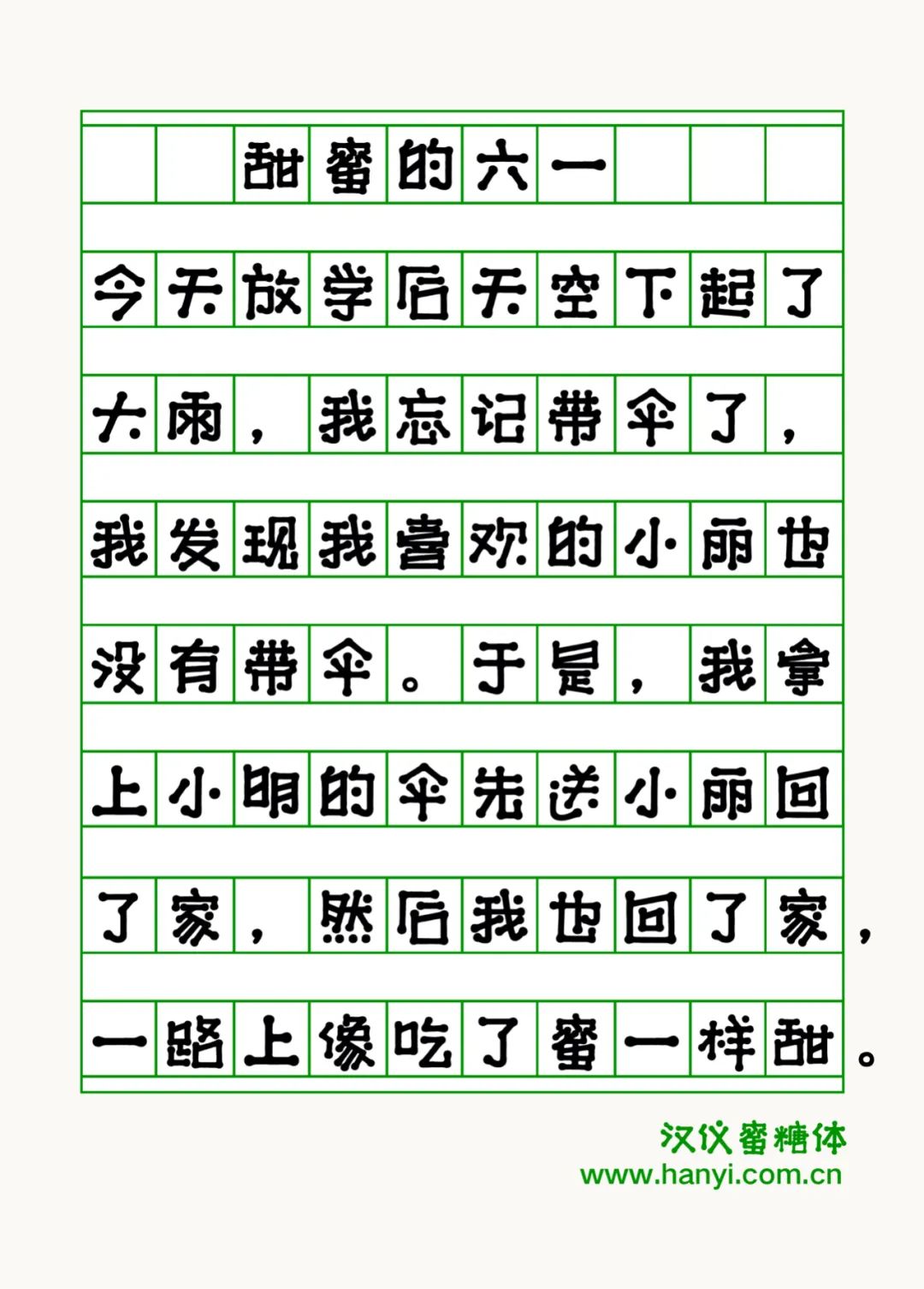 “汉仪蜜糖体”是一款字形生动,笔画童稚,结构新奇的创意手写字体,它的性格活泼可爱,像糖果一样给人带来甜蜜的感觉,适用于插图、漫画等轻松活泼的设计场合及领域。接下来让我们一起品尝这款蜜糖一样的字体吧~