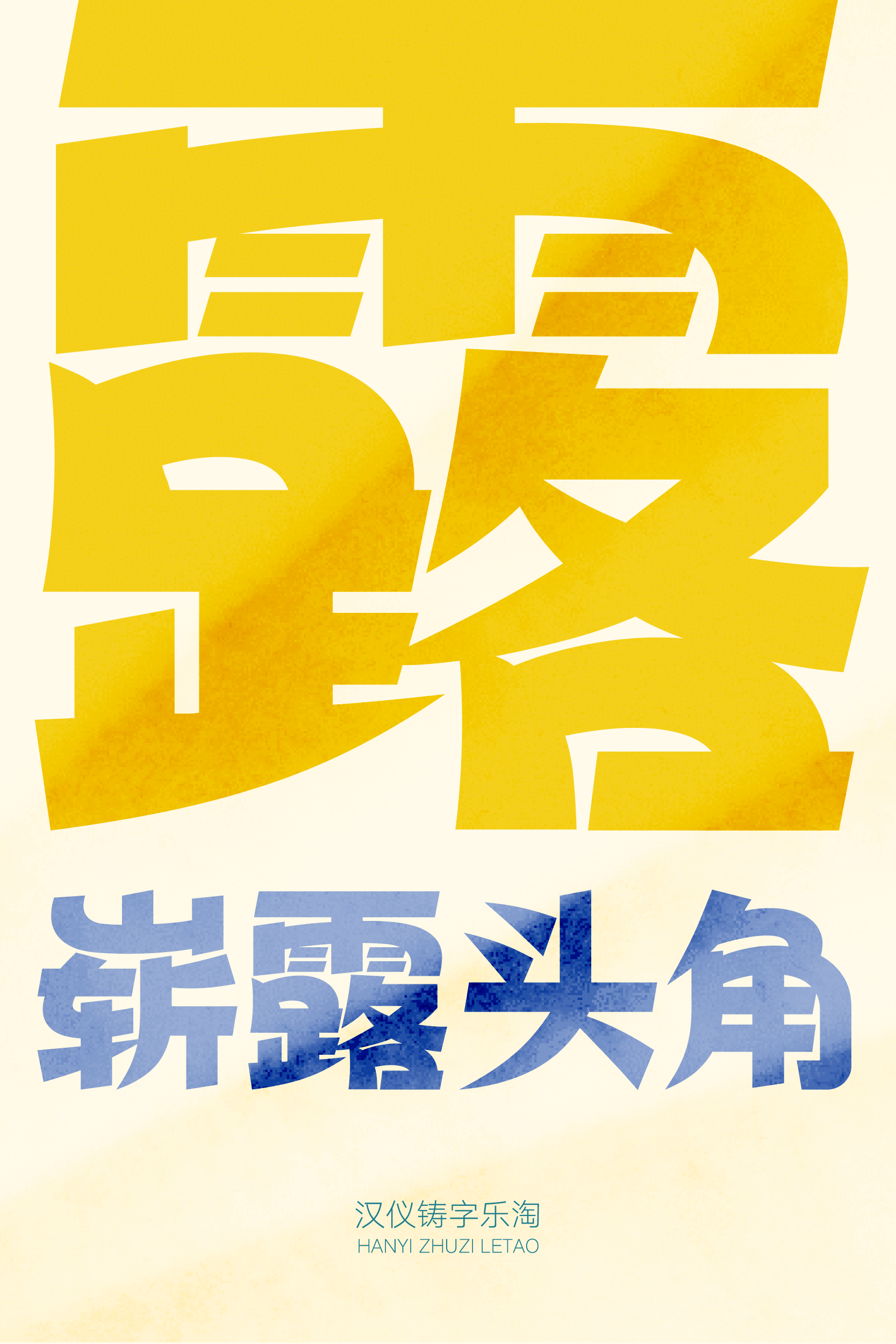 “汉仪铸字乐淘”的笔画横平竖直,横画与竖画的首尾两端以统一的斜切角呈现,干净利落,简洁硬朗。