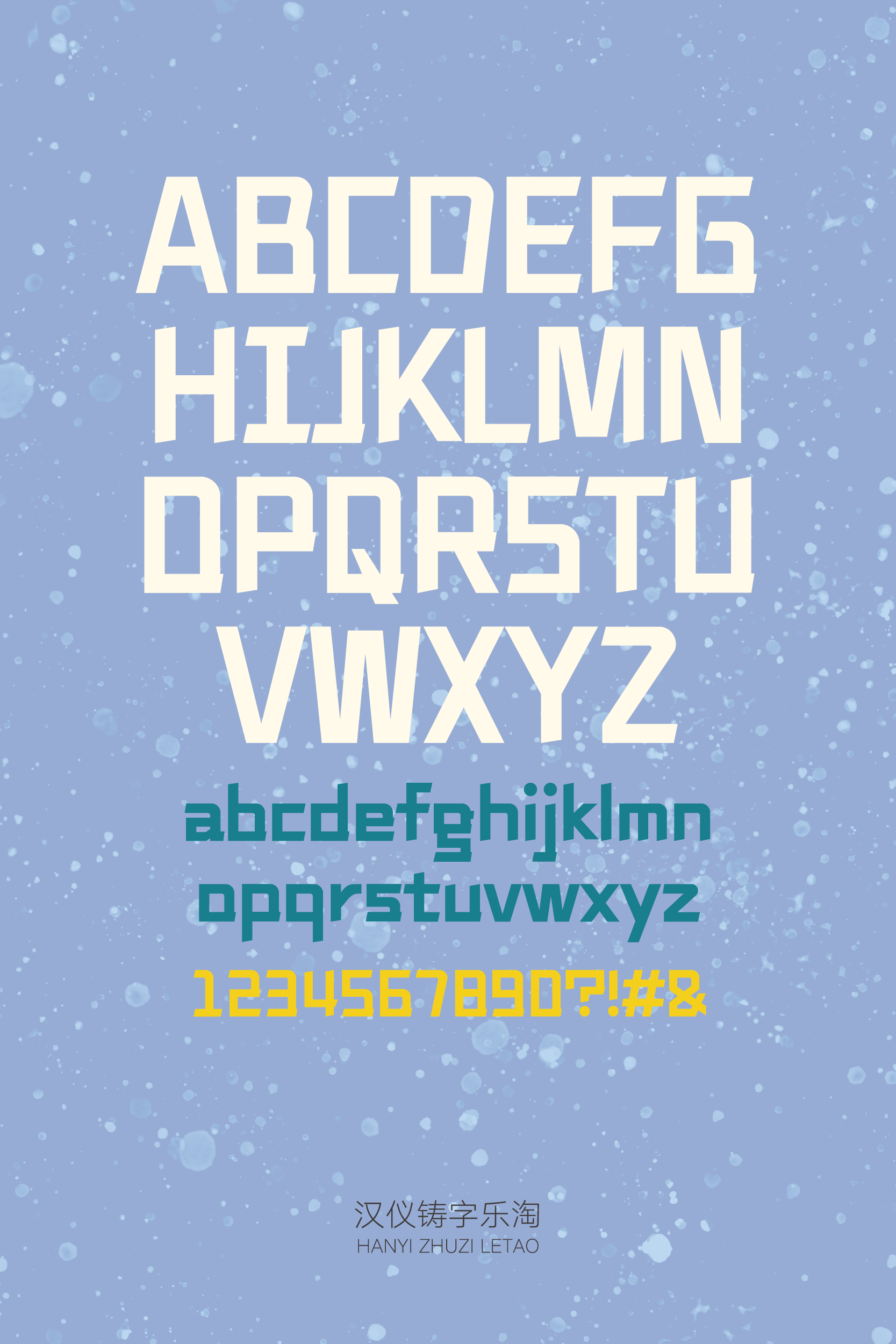 “汉仪铸字乐淘”的西文字母有着和中文一样的笔画特点,中西文搭配使用十分和谐。