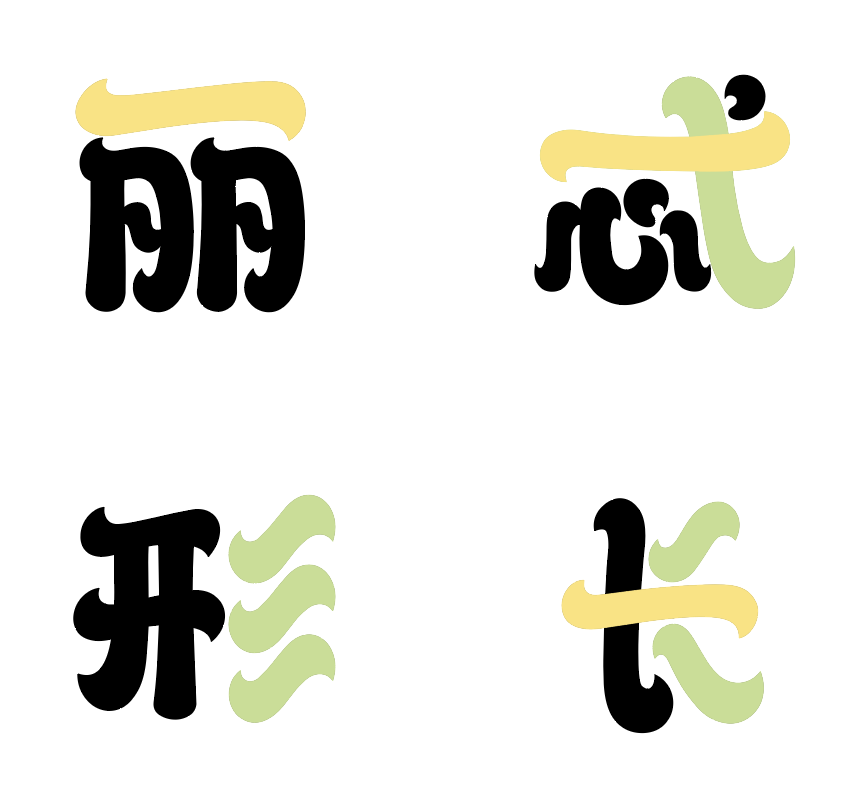 “汉仪铸字旺财”部分字体的偏旁与部首版率占比差距大,单字结构变化丰富,为字体增添了许多趣味性。