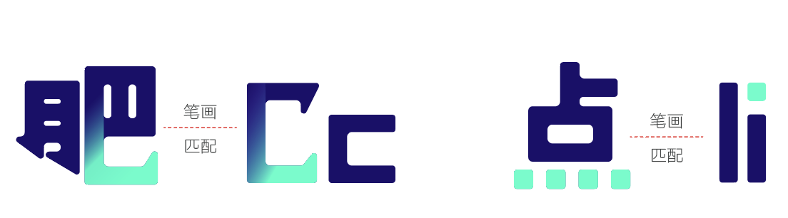 “汉仪铸字玩具派对”的笔画就像玩具积木一样。点笔画运用圆润的正方形,提笔和勾笔运用圆润的三角形,卡通效果十足。