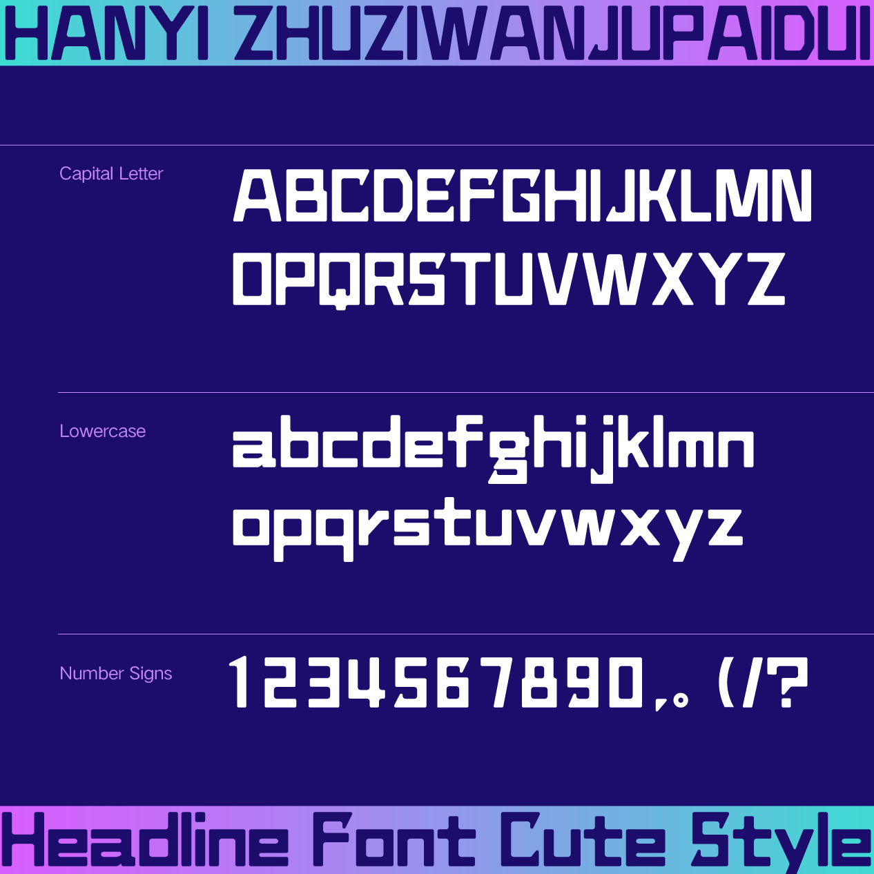 “汉仪铸字玩具派对”的西文字母充分吸收了中文童真、欢快的风格特点,有着相同的笔画特征,中西文搭配使用十分和谐。