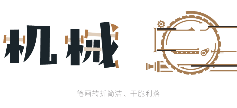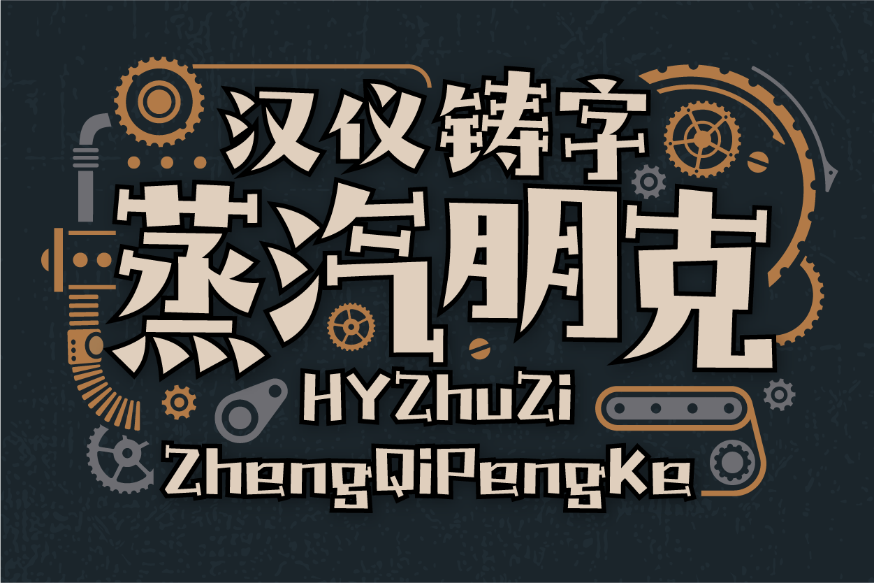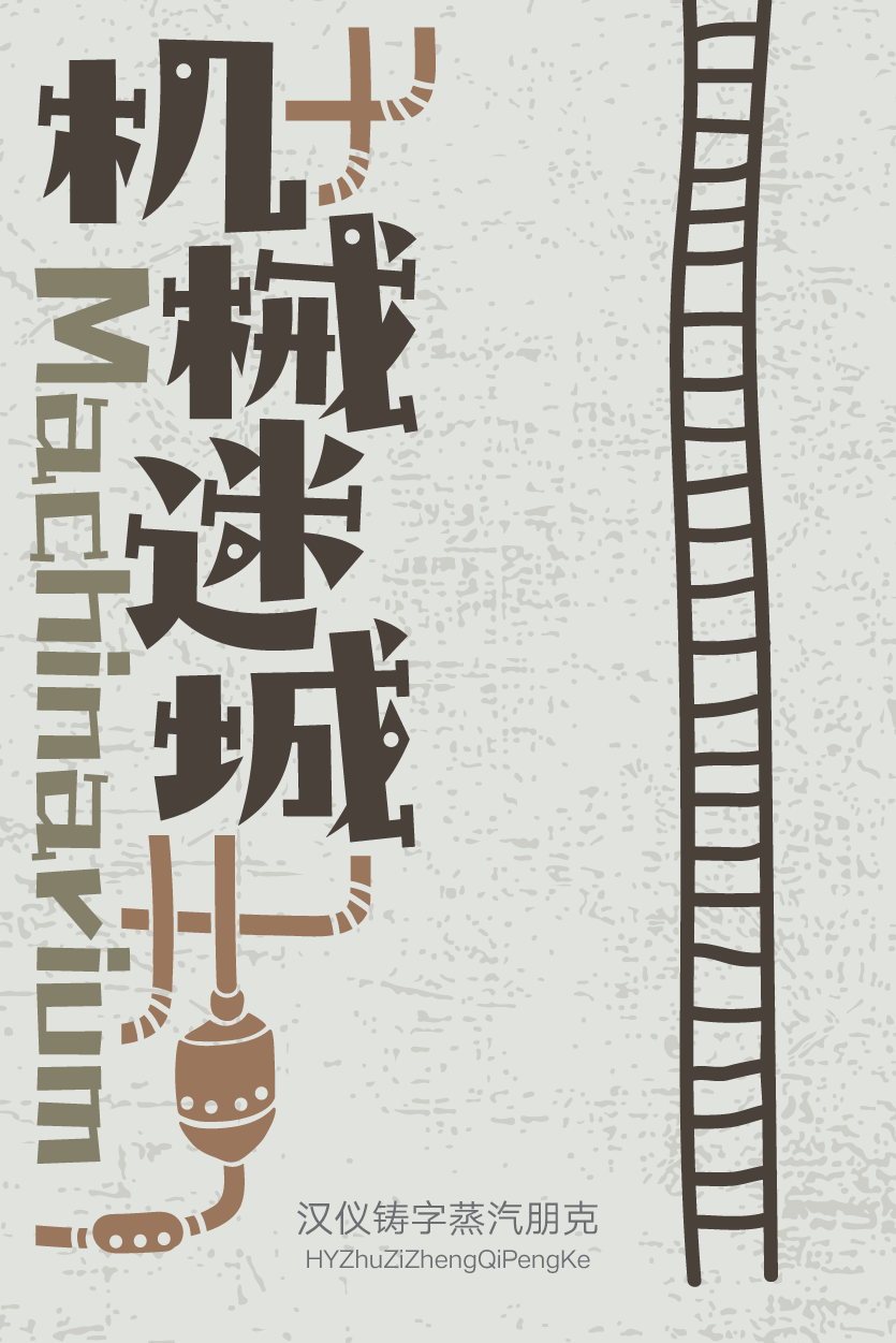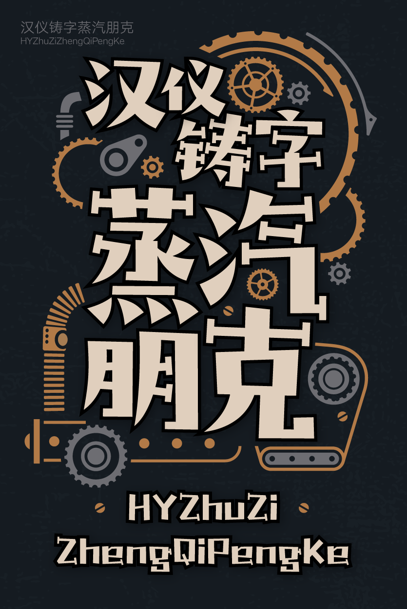 汉仪铸字蒸汽朋克这款字横细竖粗,横画两端有着螺丝帽一样的装饰衬线,增添机械装置的印象。