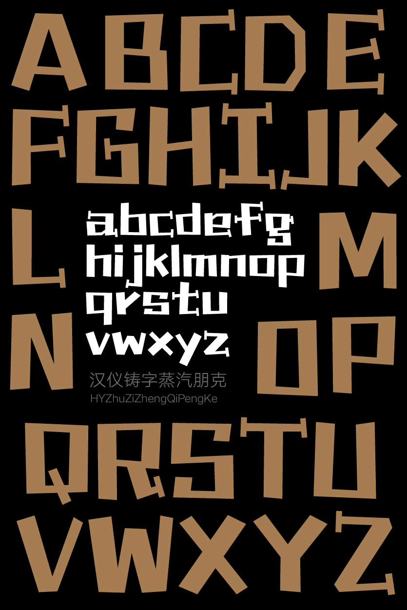 汉仪铸字蒸汽朋克是一款兼具朋克文化的叛逆气息与工业革命的科技浪漫的创意设计字体。整体风格乐观,叛逆、怀旧、可爱,适合作为标题字,用在绘本玩具、文创周边、综艺影视等场合。