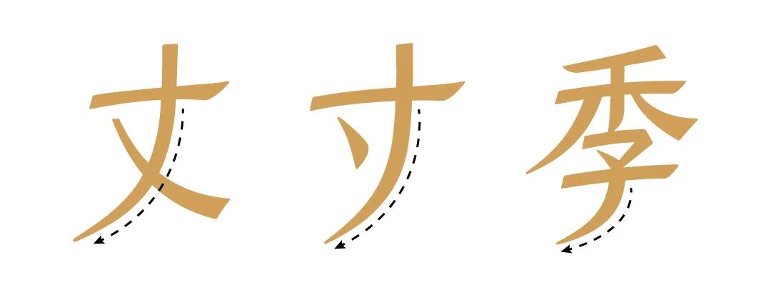 汉仪风竹体的撇画是最为个性张扬的笔划,参考汉简中顺势而为的感觉,并将汉简中的夸张之笔都融入到撇画中,一些竖钩画化作撇画,更加舒展洒脱。