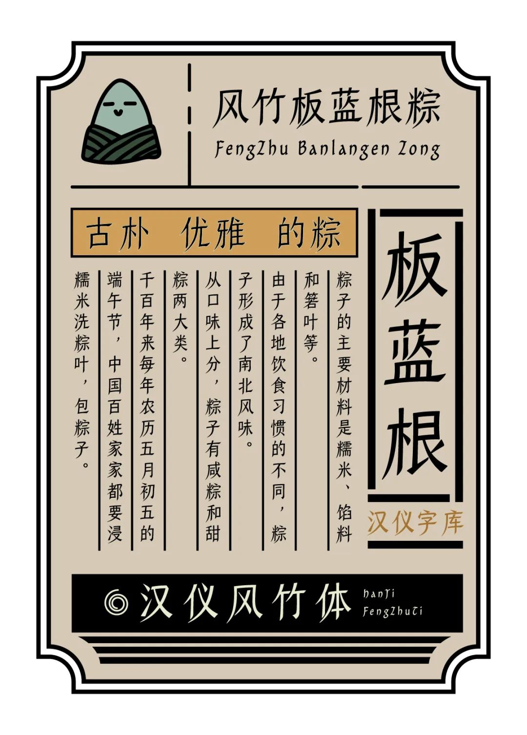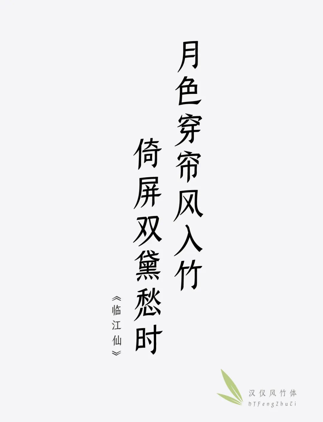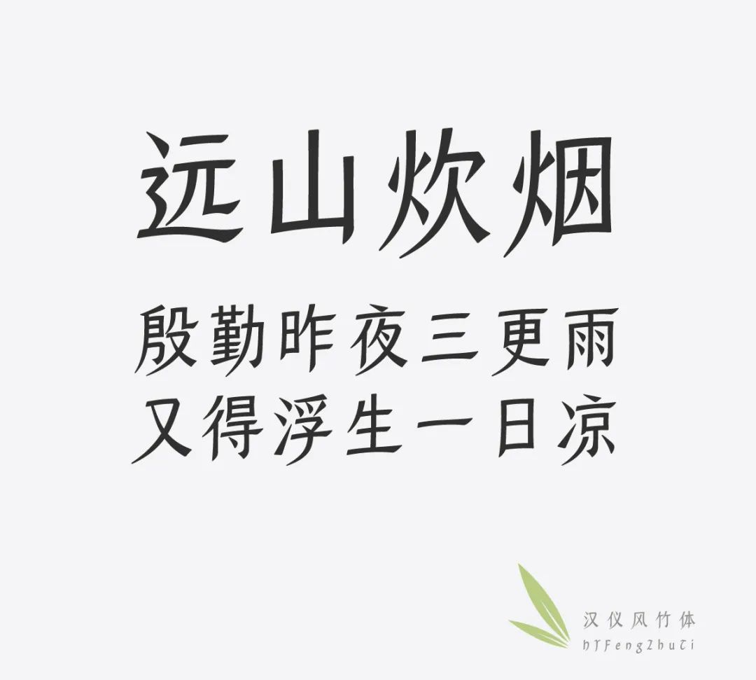 汉仪风竹体的设计灵感来源于汉代简牍,是快写篆书向隶书转变的过渡书体。它起源于民间,用笔大胆肆意、任情恣性、不守故常、十分有趣。