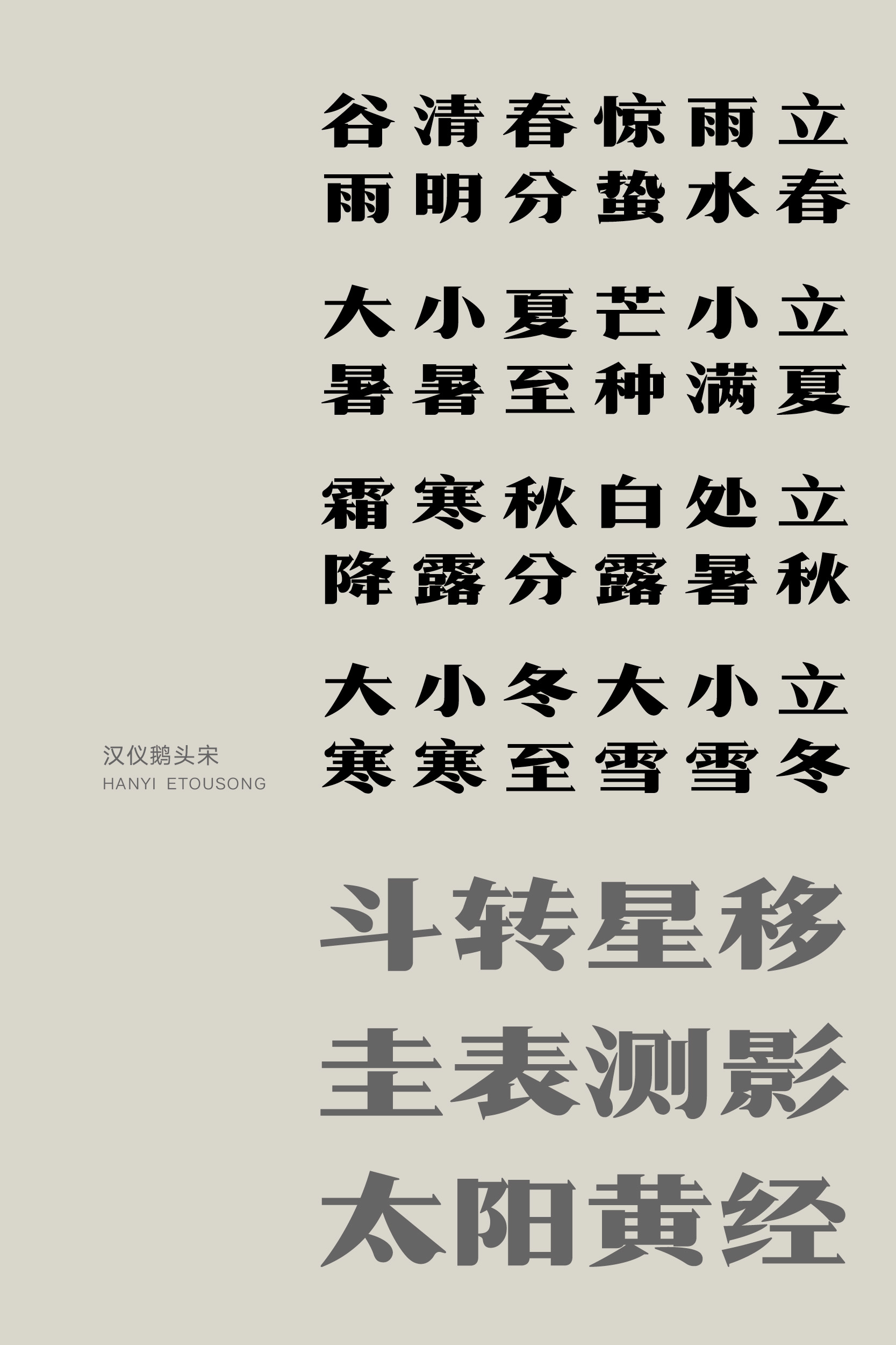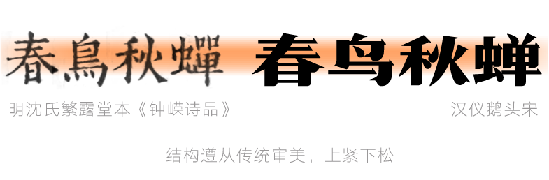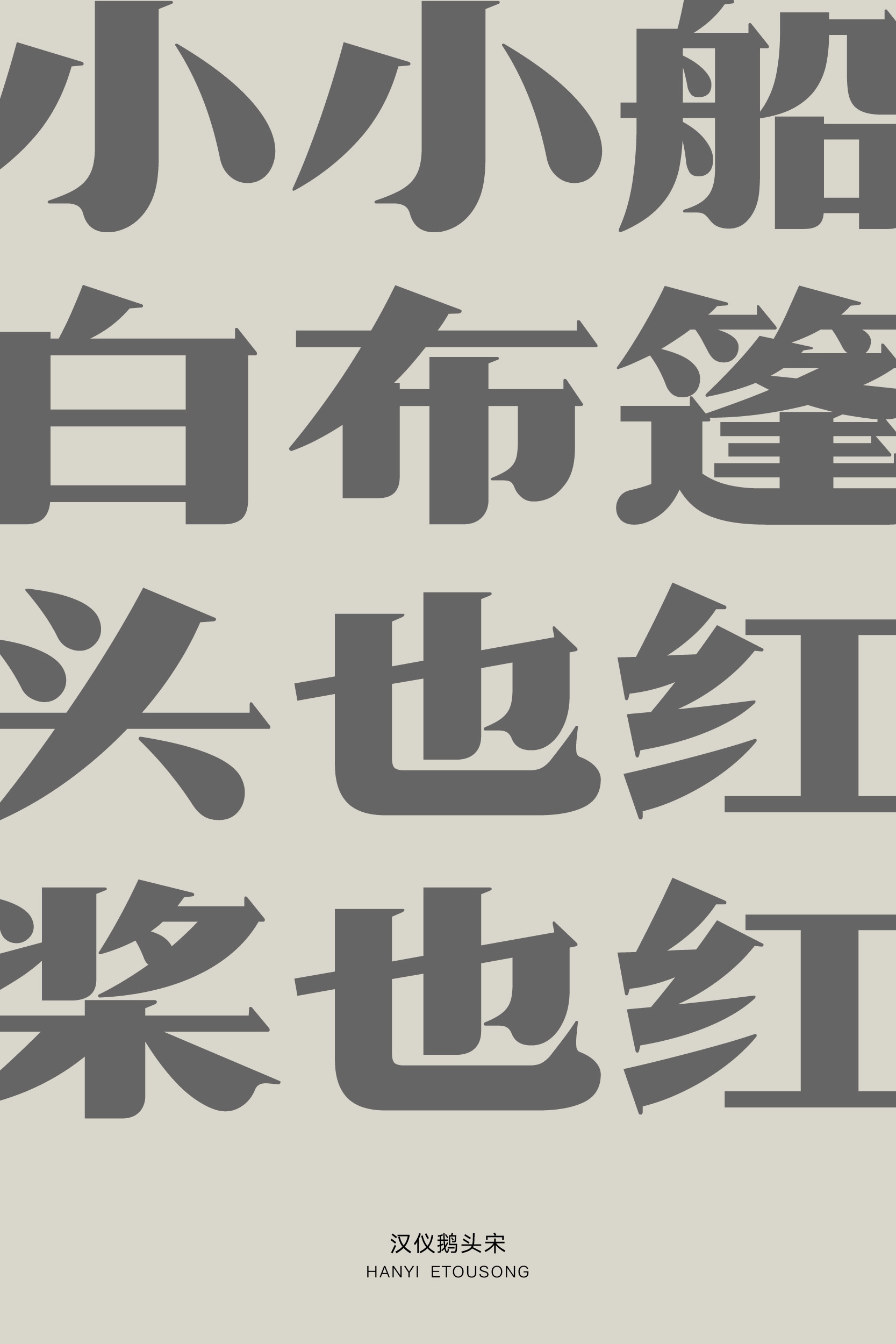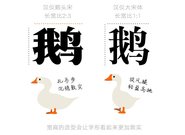 汉仪鹅头宋造型宽扁,重心平稳,为字形增添横向的视觉张力,凸显沉稳敦实的印象。