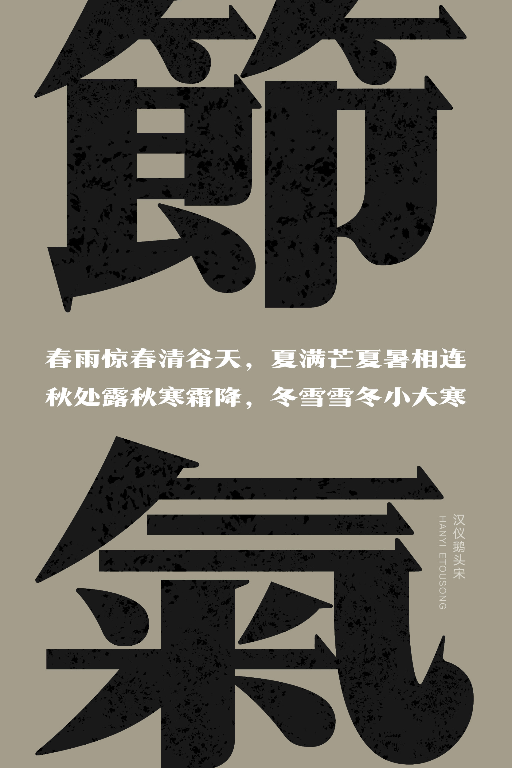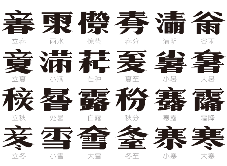 南朝钟嵘在《诗品·序》中提到:“气之动物,物之感人”,节气决定了物的变迁,而物的变迁又能惹起人情感的荡漾。古人归纳总结的二十四节气,既是指导人们生产劳动的工具,同时也是各种民间节日与民俗文化活动的载体。古人逢时令变迁会创作诗词书画来表达自己对时光荏苒的感慨,那我们今人能否用字体来展现时间的变迁呢?