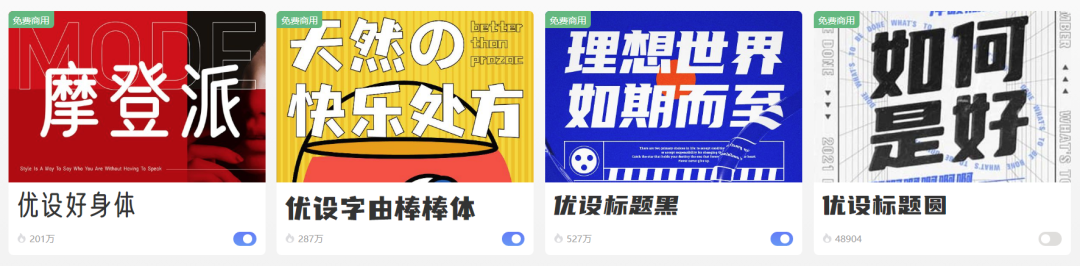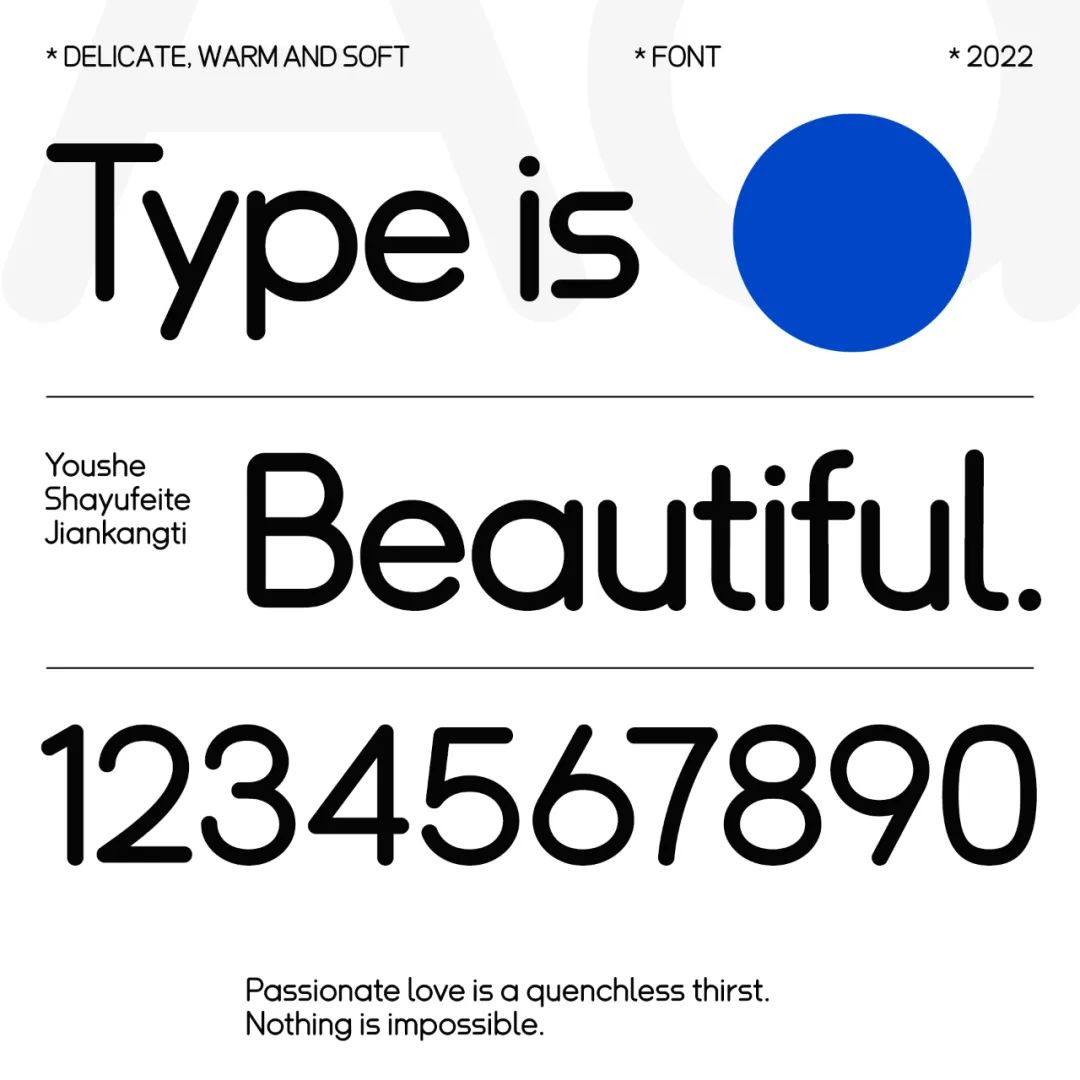 这已经是优设的第5款免费字体了,前4款都已上线字由,并成为了设计师们必不可少的宠儿。