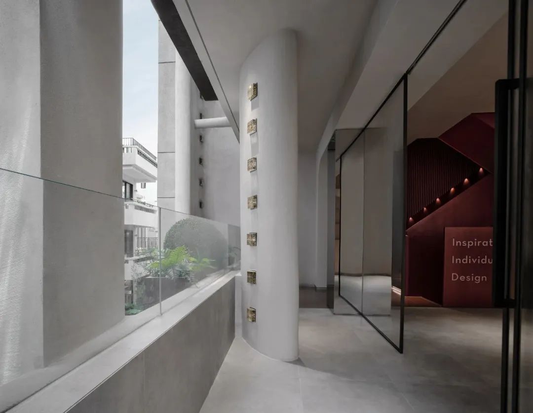 空间不大,仅60平方米,设计的小阳台,没准还能和街对面小楼上的“邻居”闲聊一番。古城的色彩与纹理,以亮眼的红色楼梯串联起每层的空间关系。