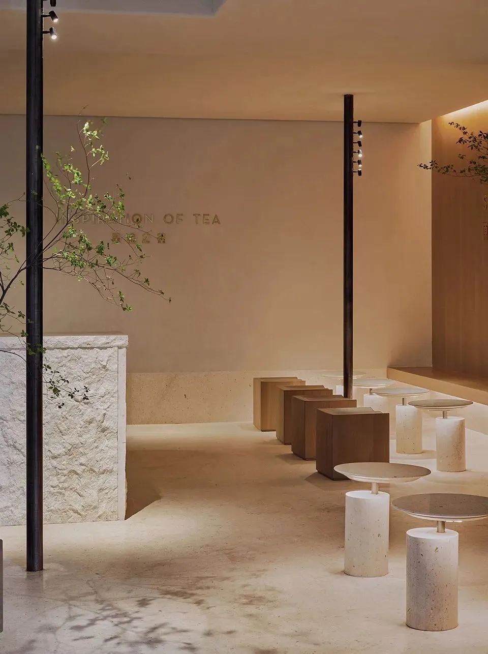“山之朴拙”,“海之沉寂”、“茶之简素”,这是从厦门印象中提炼出的核心。山海印象同古老的茶文化结合,用年轻化的设计语言传递东方的禅意精神,尽显东方气韵。空间设计采用了石材、木材等拥有不规则肌理的天然材质。有打磨的如镜面般温润光滑的大理石,也有原生粗旷的自然肌理。
