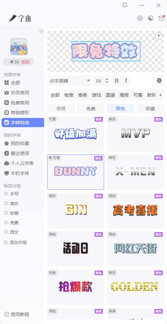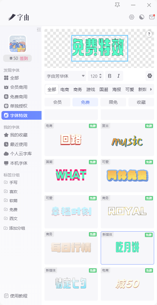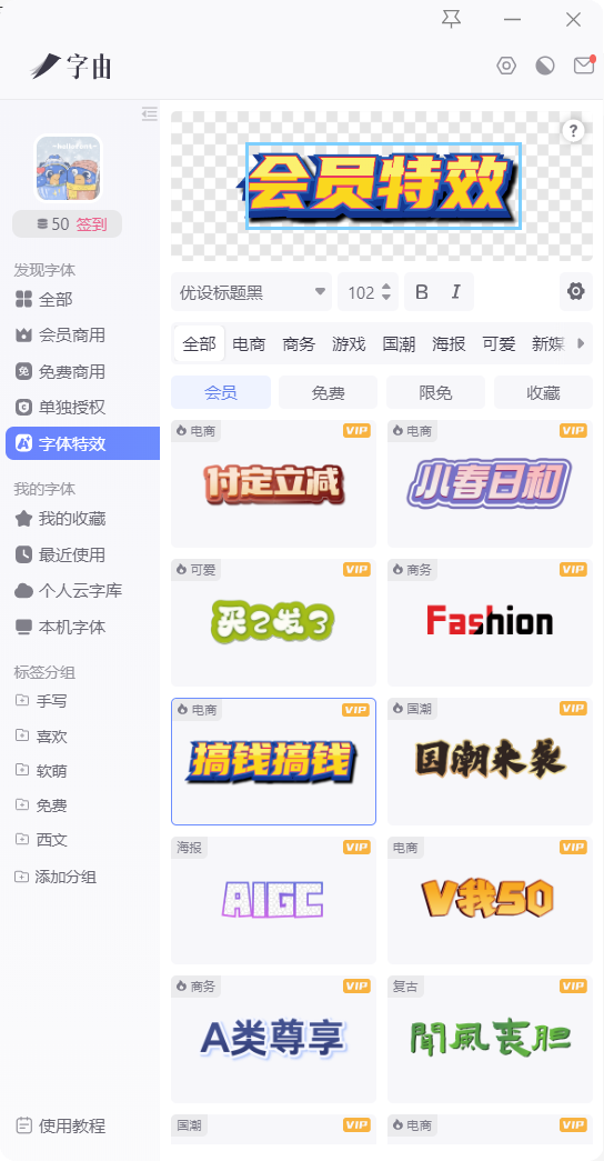 所谓不破不立,这次字由推出了全新的字体特效(up了不止一个档次),首批上线203款(后续还会不断更新),特意匹配了不同使用场景,不管是电商需要的氛围感: