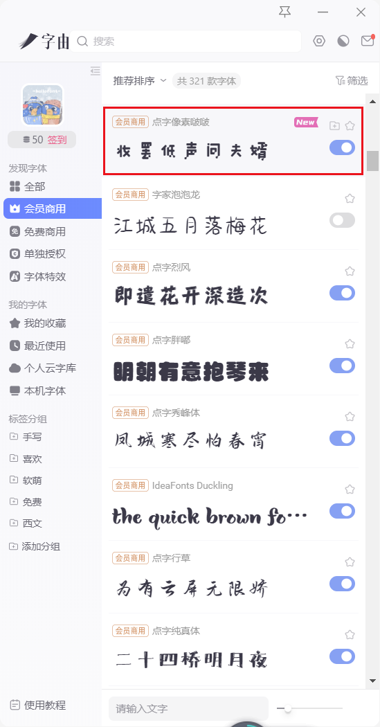 最近字由上线了一款新的会员字体,没错,就是点字像素啵啵。