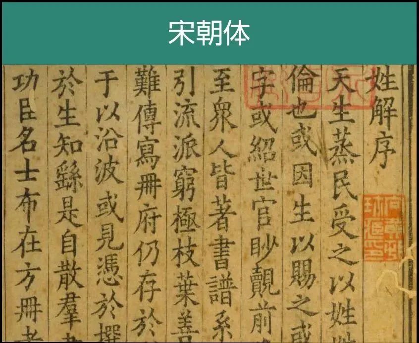 当时的印刷字体,皆以唐代书法大家的楷体为模板雕刻而成,雕刻时也多保存着书法的特点,因此这一时期的印刷体都带有浓厚的书法韵味,被称为“宋朝体”。