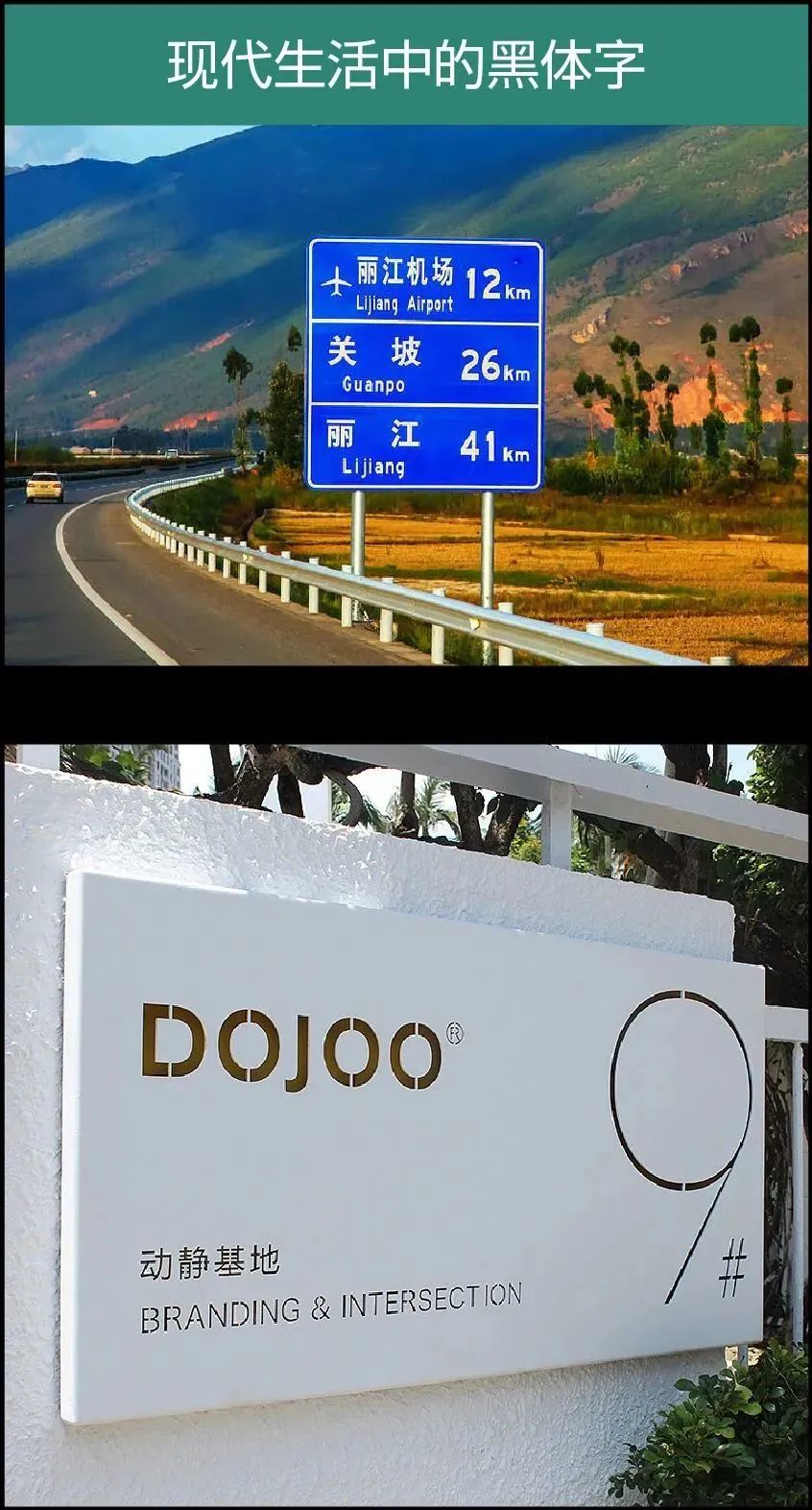 它受西文中的无衬线字体启发而来,也继承了西文无衬线字体属性较弱的特点,更能直接传递出文字本身的信息,因此我们可以发现,很多路标、指示牌、广告等载体也更青睐它。