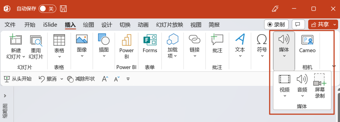 而这,也可能是价值几十万的PPT里最简单的一招秘籍!有多简单呢?在插入选项卡找到媒体按钮: