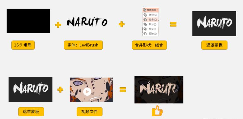 摆好矩形和文字,两者布尔运算组合,再置于视频之上: