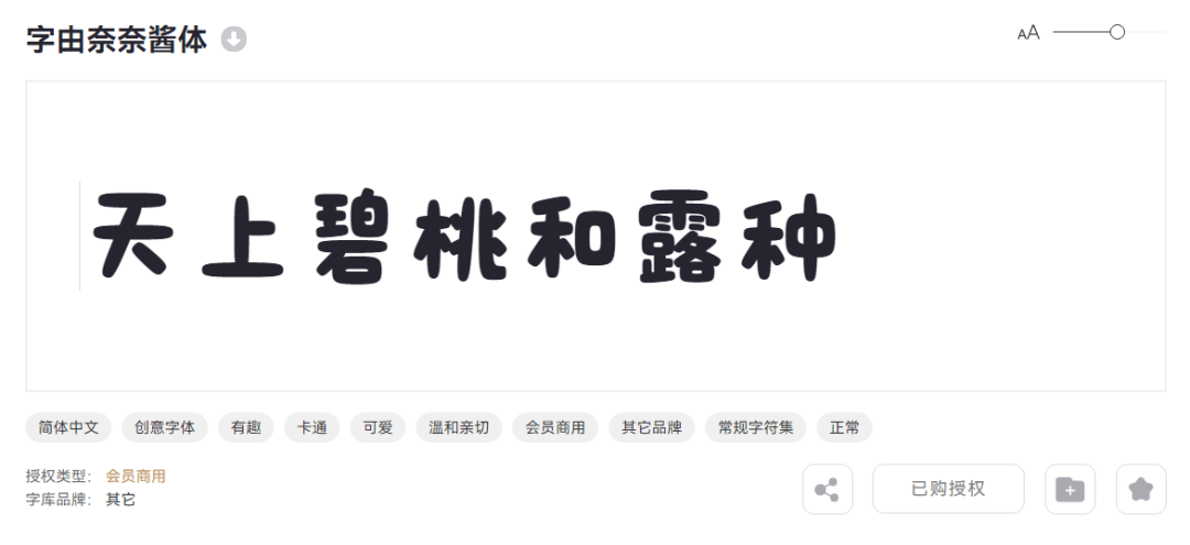 如今它也有专属字体了,就是这个字由奈奈酱体。