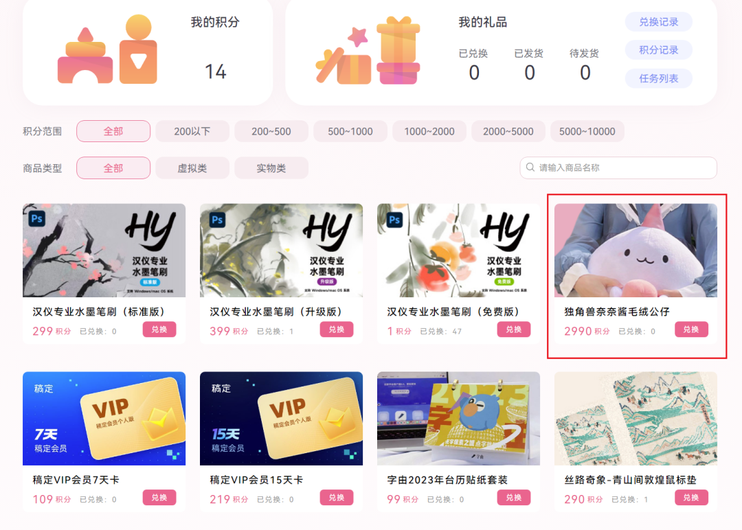最后福利来啦!为庆祝字体发布,独角兽奈奈酱毛绒公仔,同步上线积分商城,满2990即可兑换,限量3个,先到先得哦!